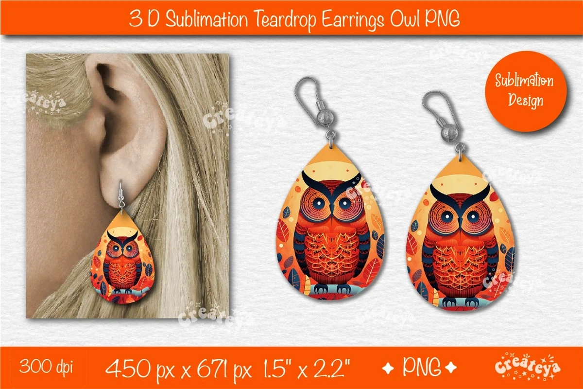 3D earring Teardrop sublimation with 3D Owl is perfect for summer teardrop earrings. Country style, farmhouse Folk style Teardrop earring sublimation PNG.