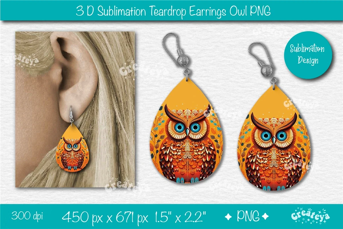 3D earring Teardrop sublimation with 3D Owl is perfect for summer teardrop earrings. Country style, farmhouse Folk style Teardrop earring sublimation PNG.