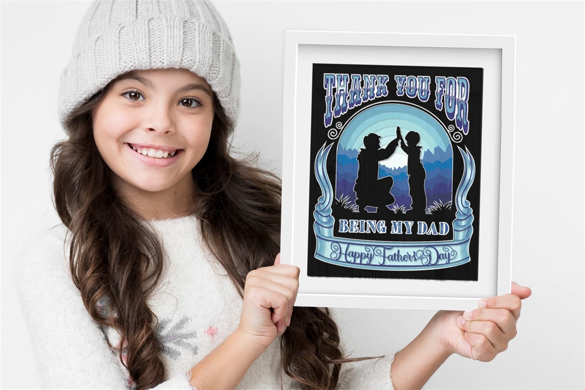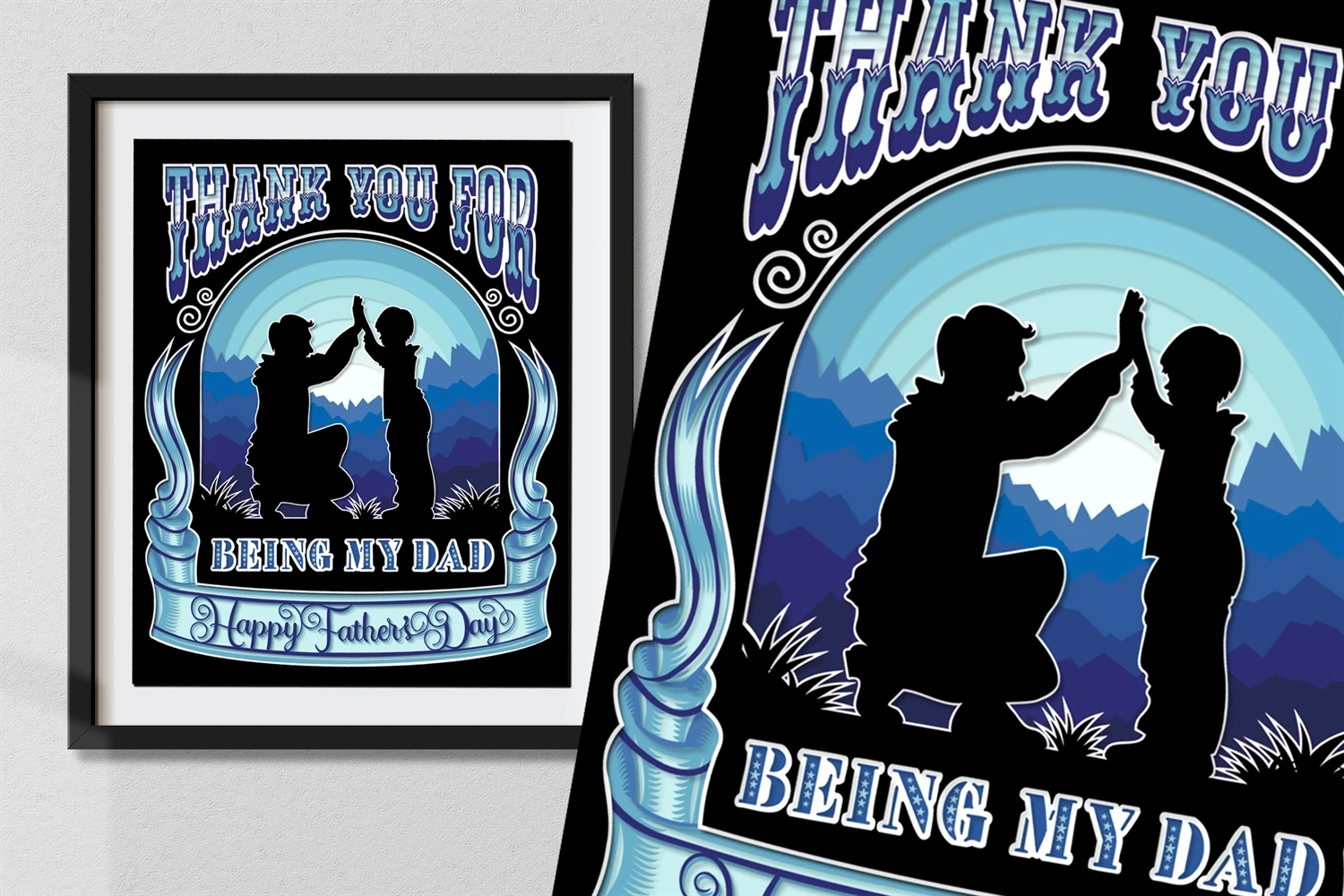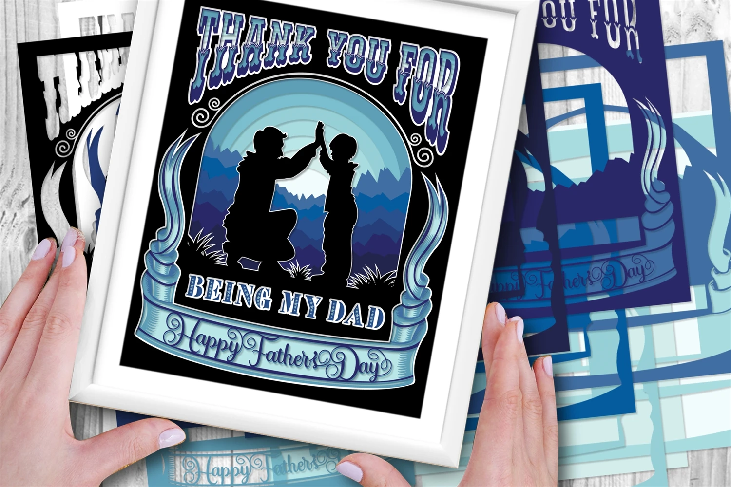 3D Father's Day Gift Multi-layered Design Thank You DAD Papercut SVG Clipart in Blue & Black Tone color for your creative DIY projects, and gift ideas for Father's Day. Perfect for papercut, scrapbooking, card stock, home decor, and other DIY projects. Options are endless!
