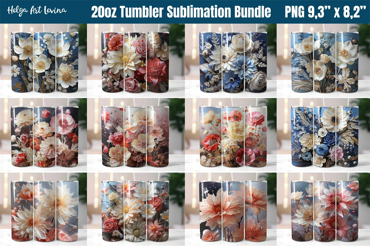 3D Flower 20 OZ Skinny Tumbler Sublimation Bundle