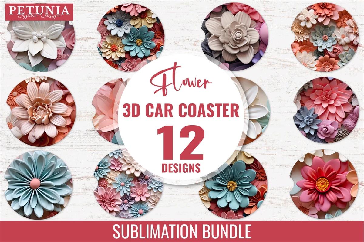 3D Flower Car Coaster, 3D Car Coaster Sublimation Bundle