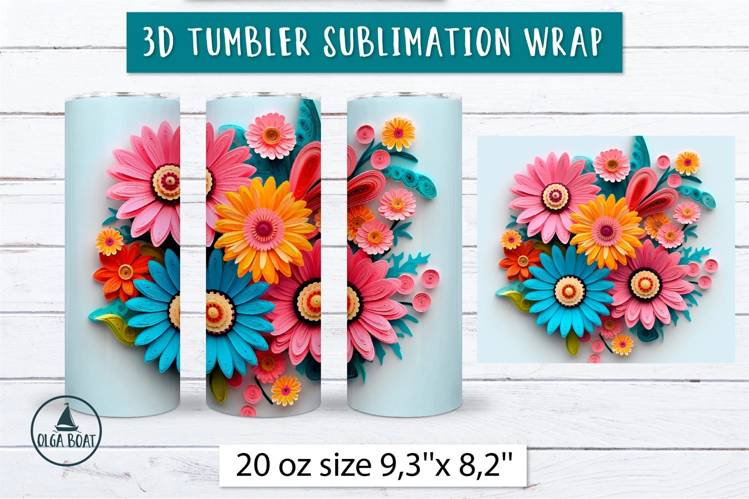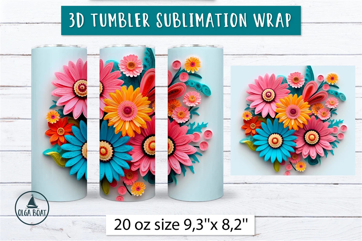 3D flower design with daisies perfect for sublimation wrap 20 oz.