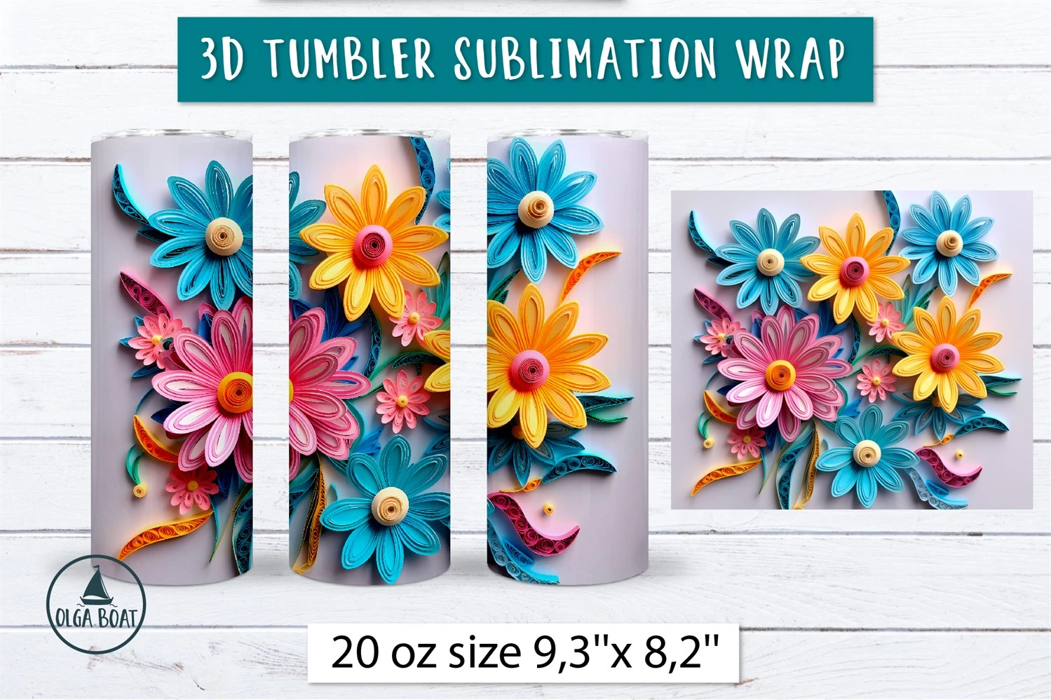 3D flower design with daisies perfect for sublimation wrap 20 oz.