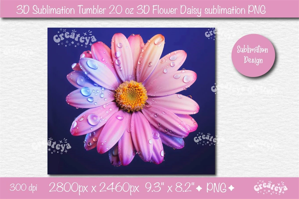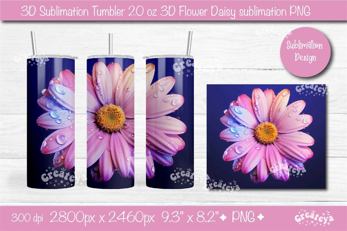 3D Flower Tumbler wrap sublimation with 3D Flower 3d daisy Tumbler 20 Oz skinny sublimation design PNG.