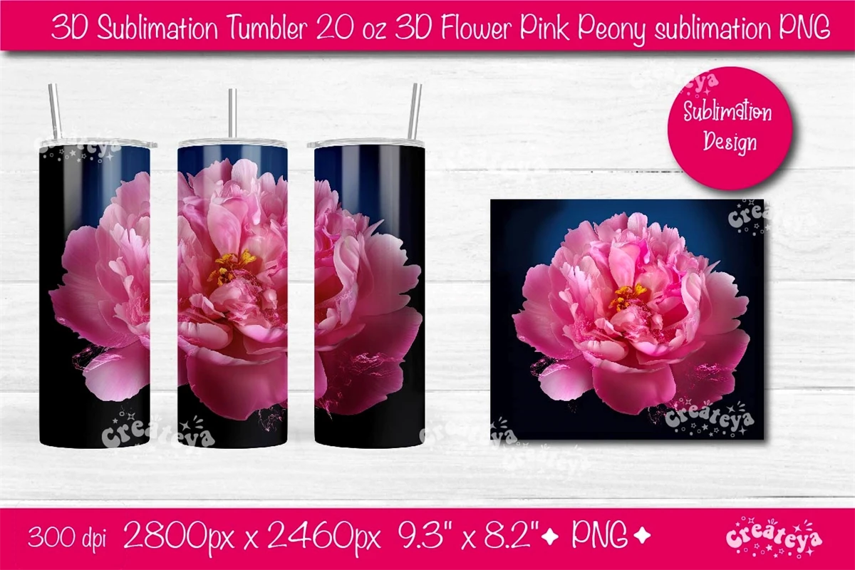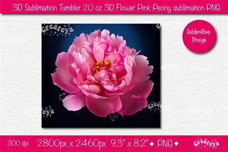 3D Flower Tumbler wrap sublimation with 3D Flower Pink Peony Tumbler 20 Oz skinny sublimation design PNG.