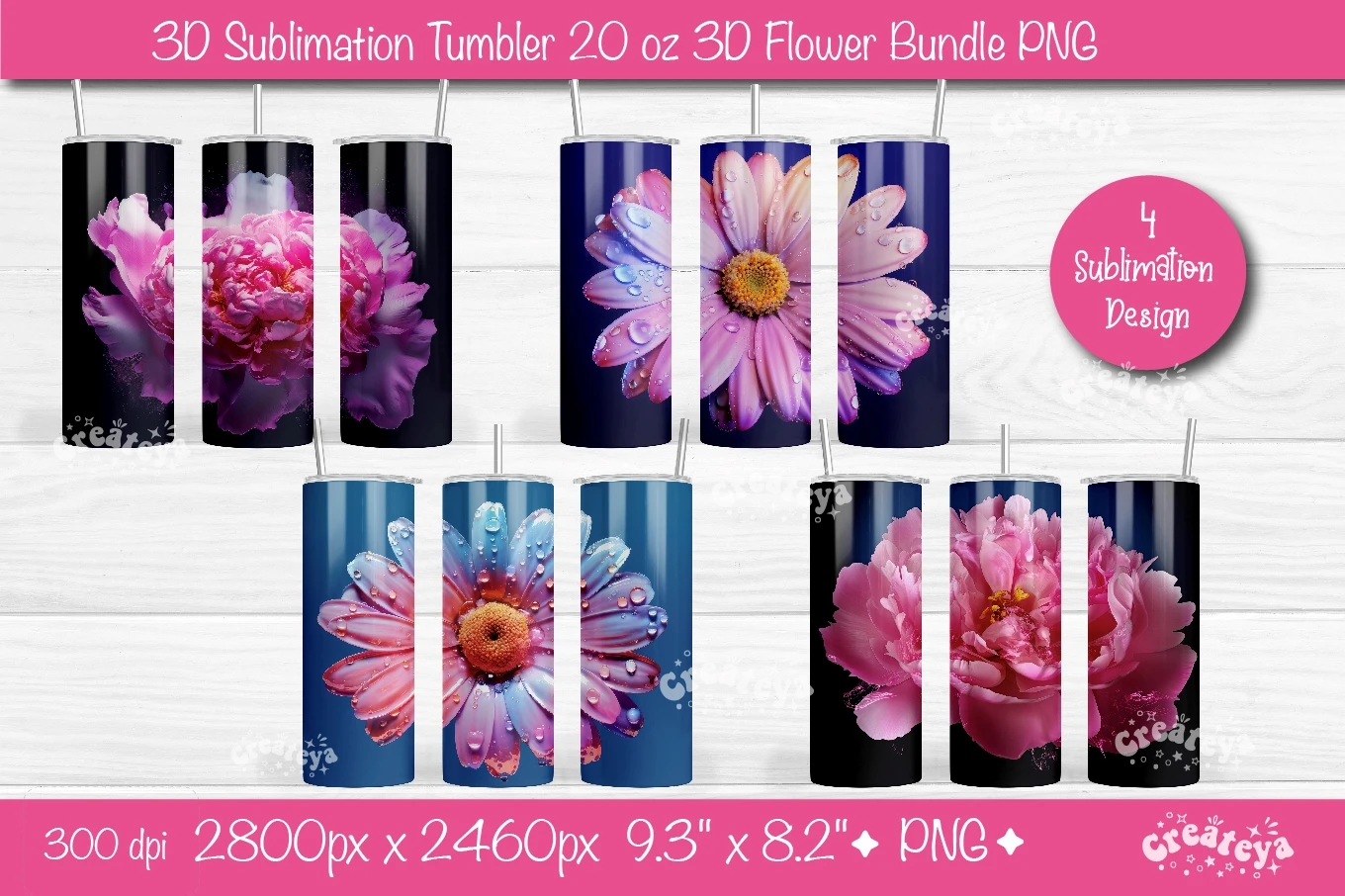 Use these 3d flower sublimation tumbler Bundle designs to create tumblers for you and your friends.