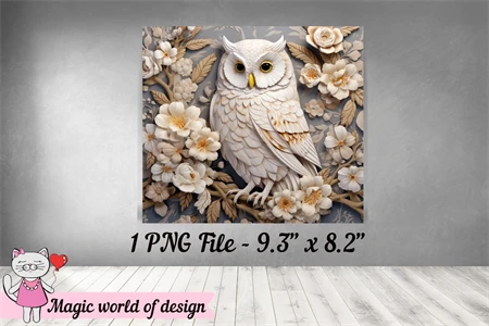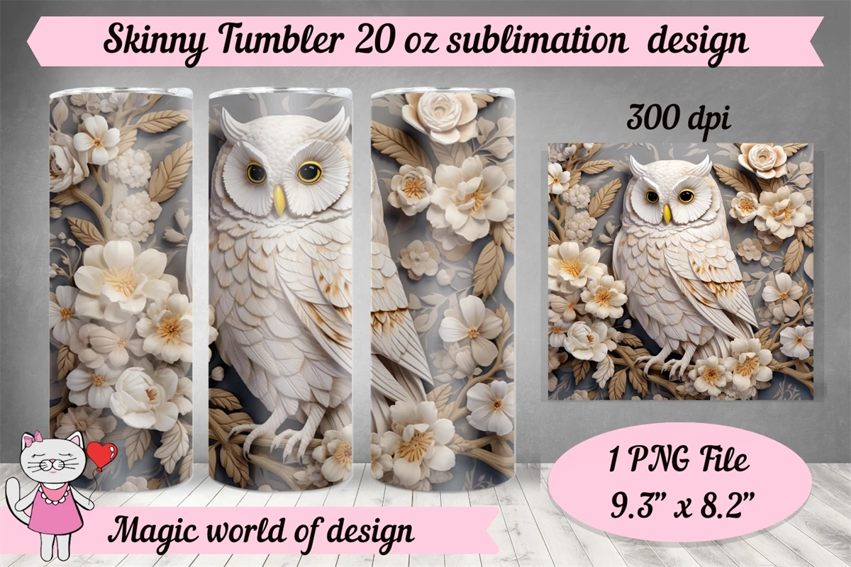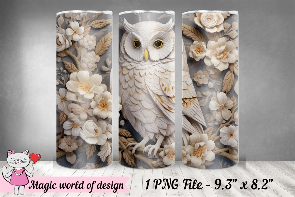 3D flowers Owl skinny Tumbler 20 oz, Sublimation Design