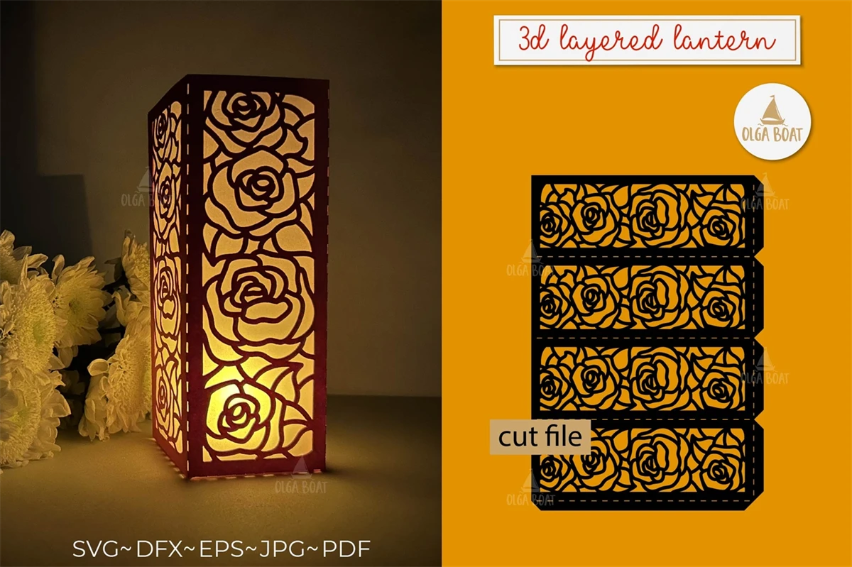 Paper rose svg lantern design compatible with Cricut, Silhouette and most cutting machines!