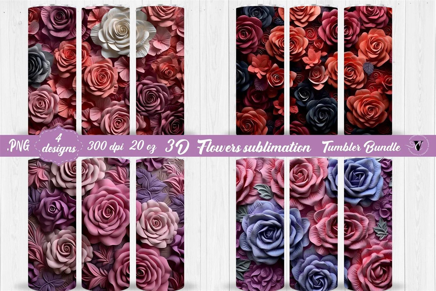 3D Flowers sublimation, 20 oz tumbler sublimation design bundle, tumbler wrap bundle, skinny tumbler, 3D