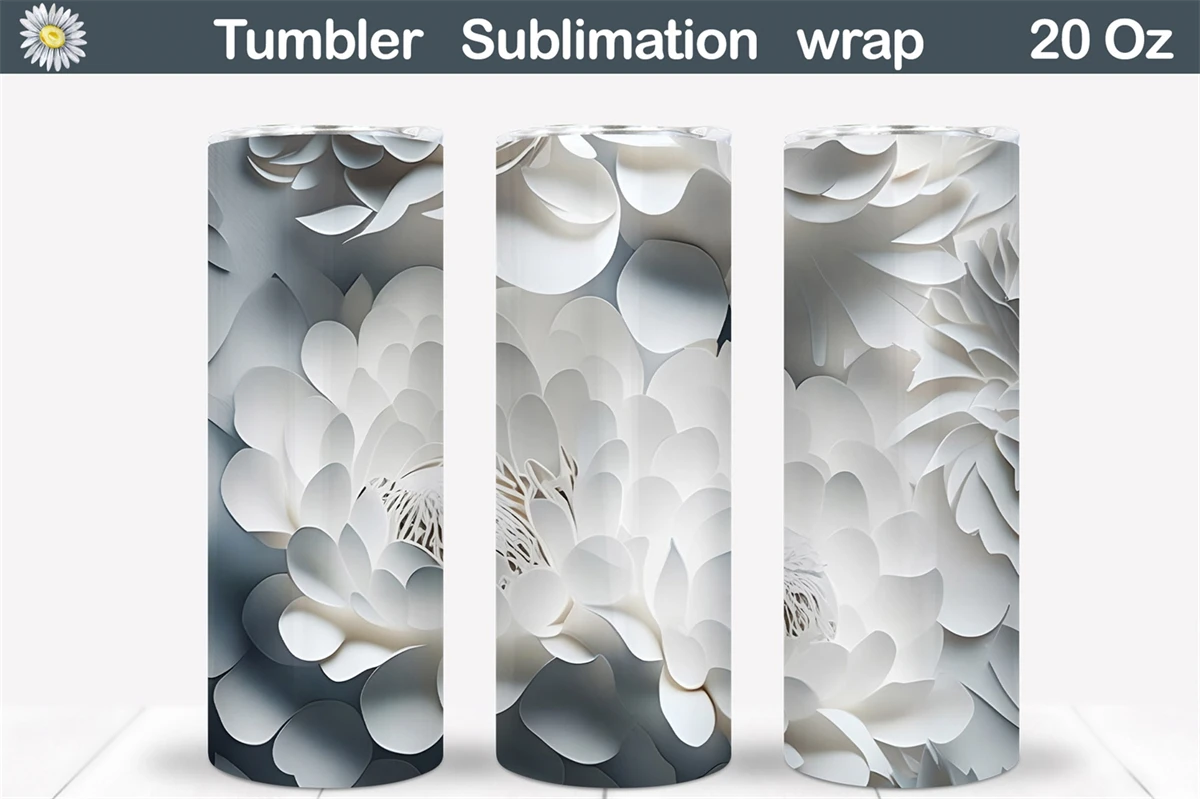 3D Flowers Tumbler Wrap. Paper Art Tumbler