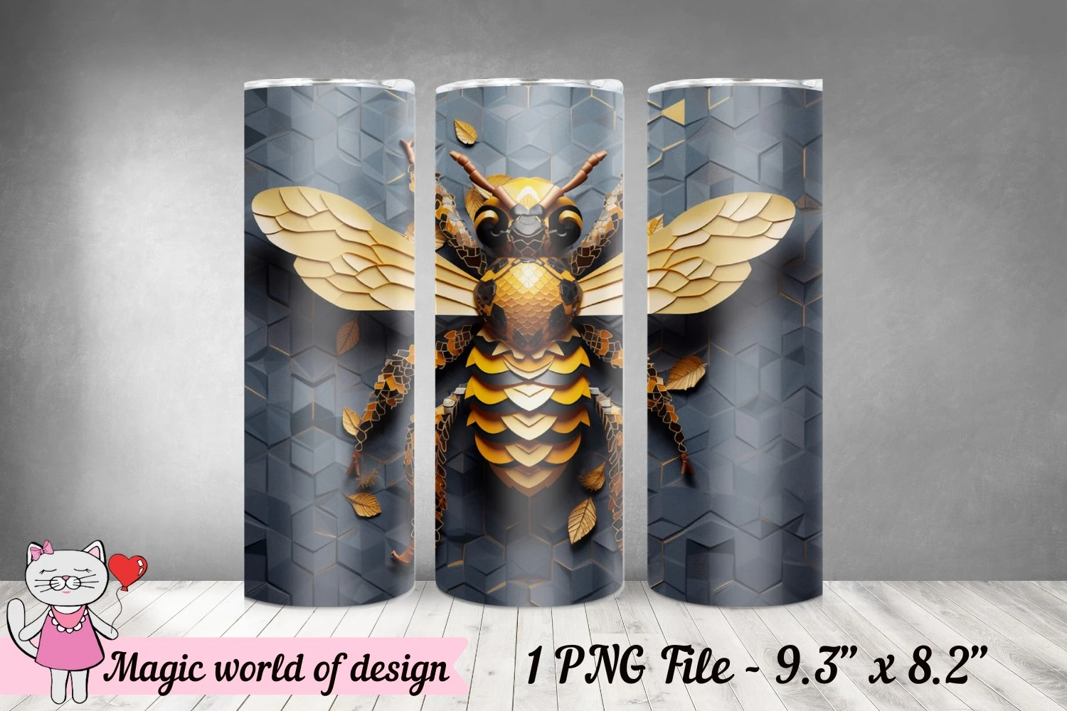 3D Bee tumbler wrap png