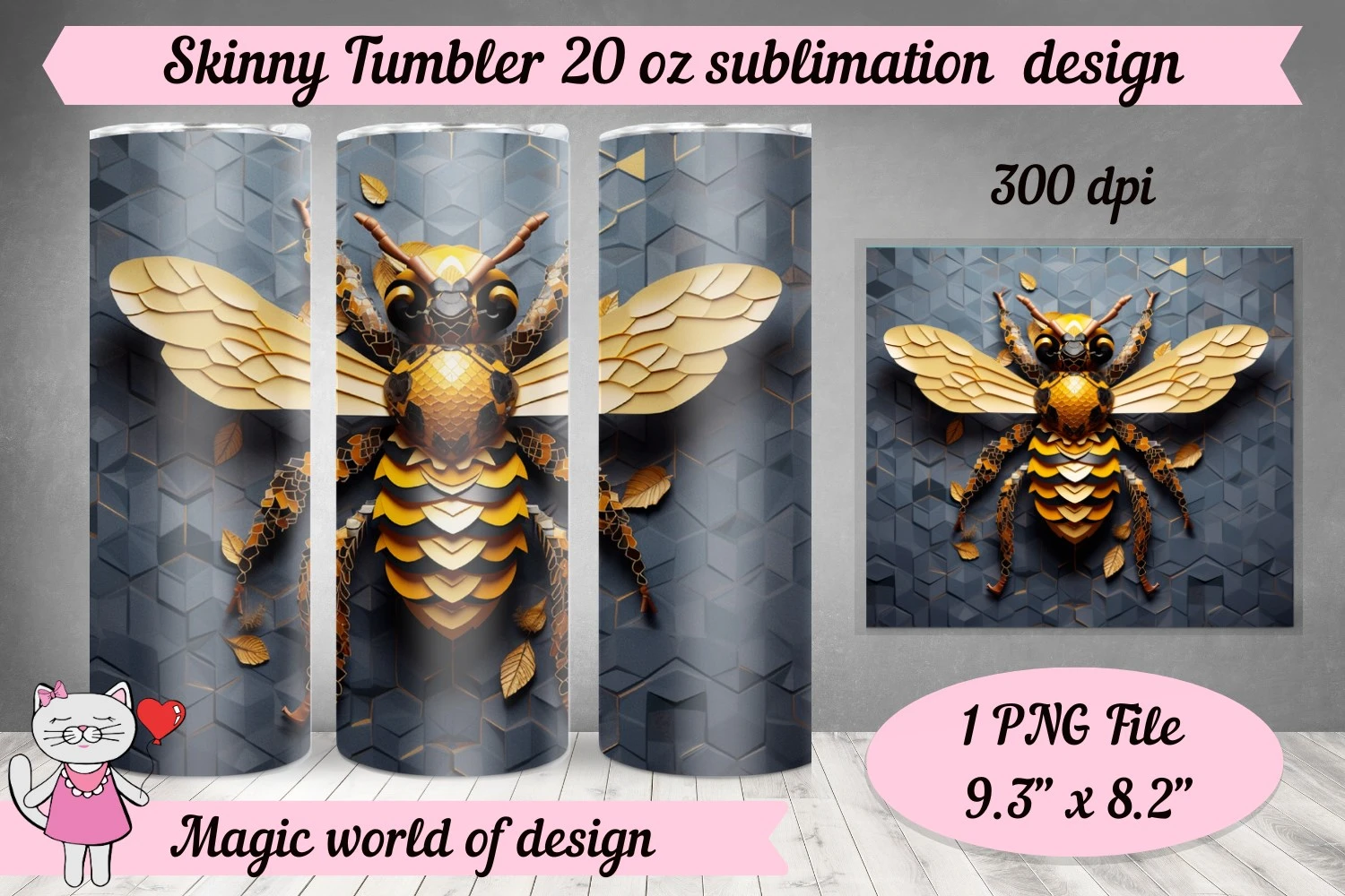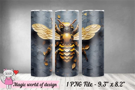 3D Bee for 20 oz Skinny Tumbler Wrap PNG, Sublimation