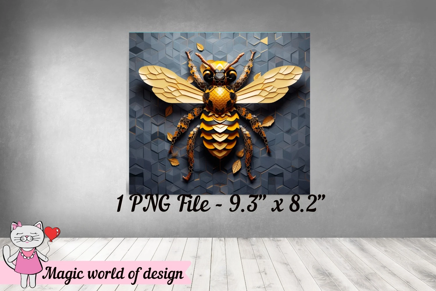 3D Gold Bee for 20 oz Skinny Tumbler Wrap PNG, Sublimation