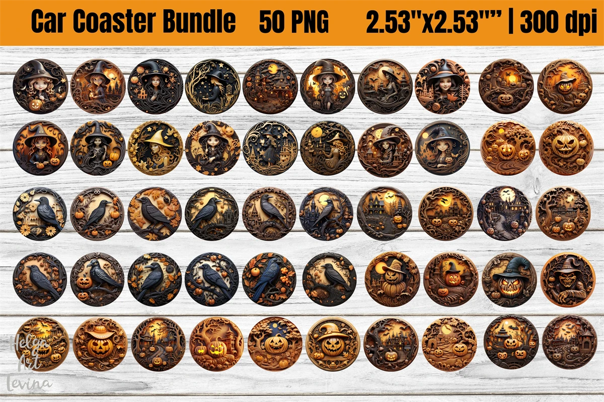 3D Halloween Car Coaster Bundle Sublimation Designs