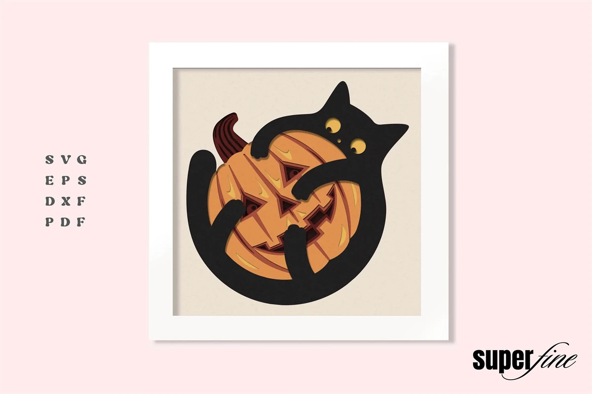 This design features a stunning Halloween Cat 3d SVG design, with layered shadows that create a realistic 3D effect. This design is perfect for use with a shadow box or other 3D display, and is sure to add a touch of beauty to any project.