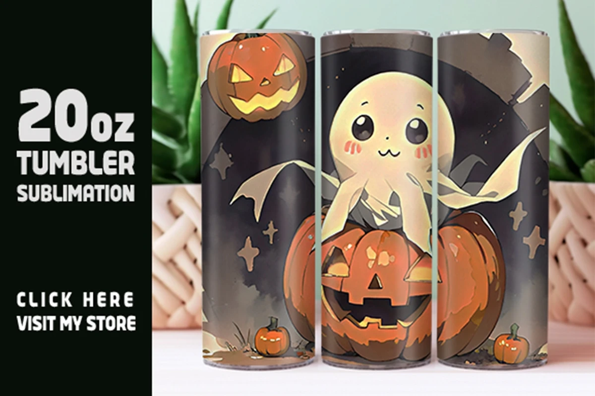 3D Halloween Tumbler Wrap Cute Ghost sublimation wrap design