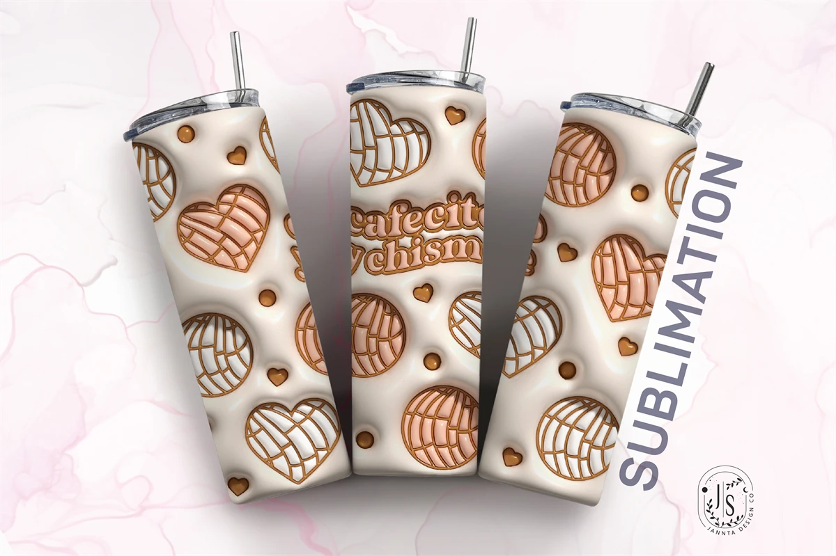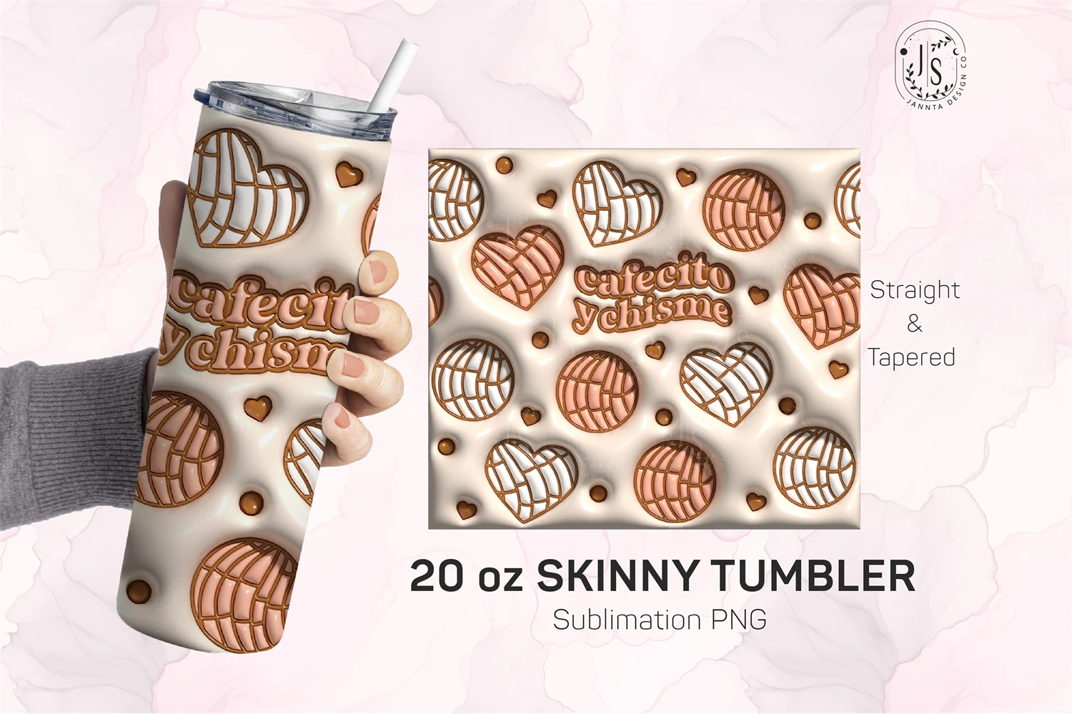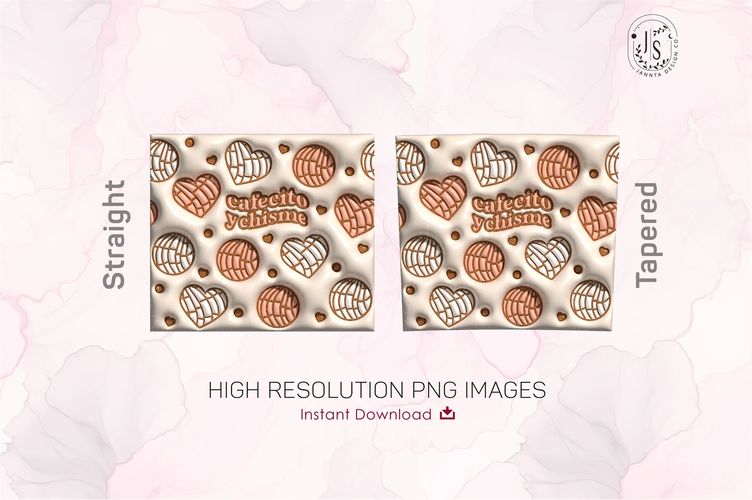 3D Inflated Concha Tumbler Wrap, Mexican Sublimation Design, Digital Download Puff Tumbler, Cafecito y Chisme png, Cookie Concha Tumbler, Digital Download PNG Template, Sublimation PNG Template