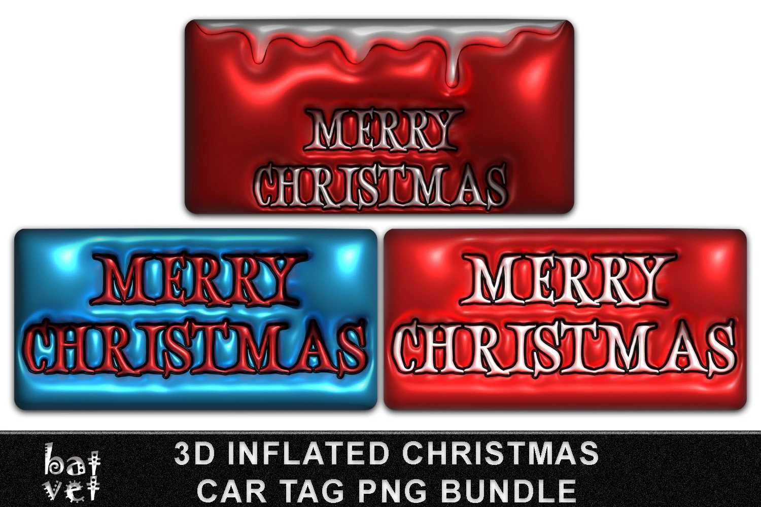 3D Inflated Christmas License Plate Sublimation Bundle / Merry Christmas Car Plate Puffy Designs / 3 PNG Bundle