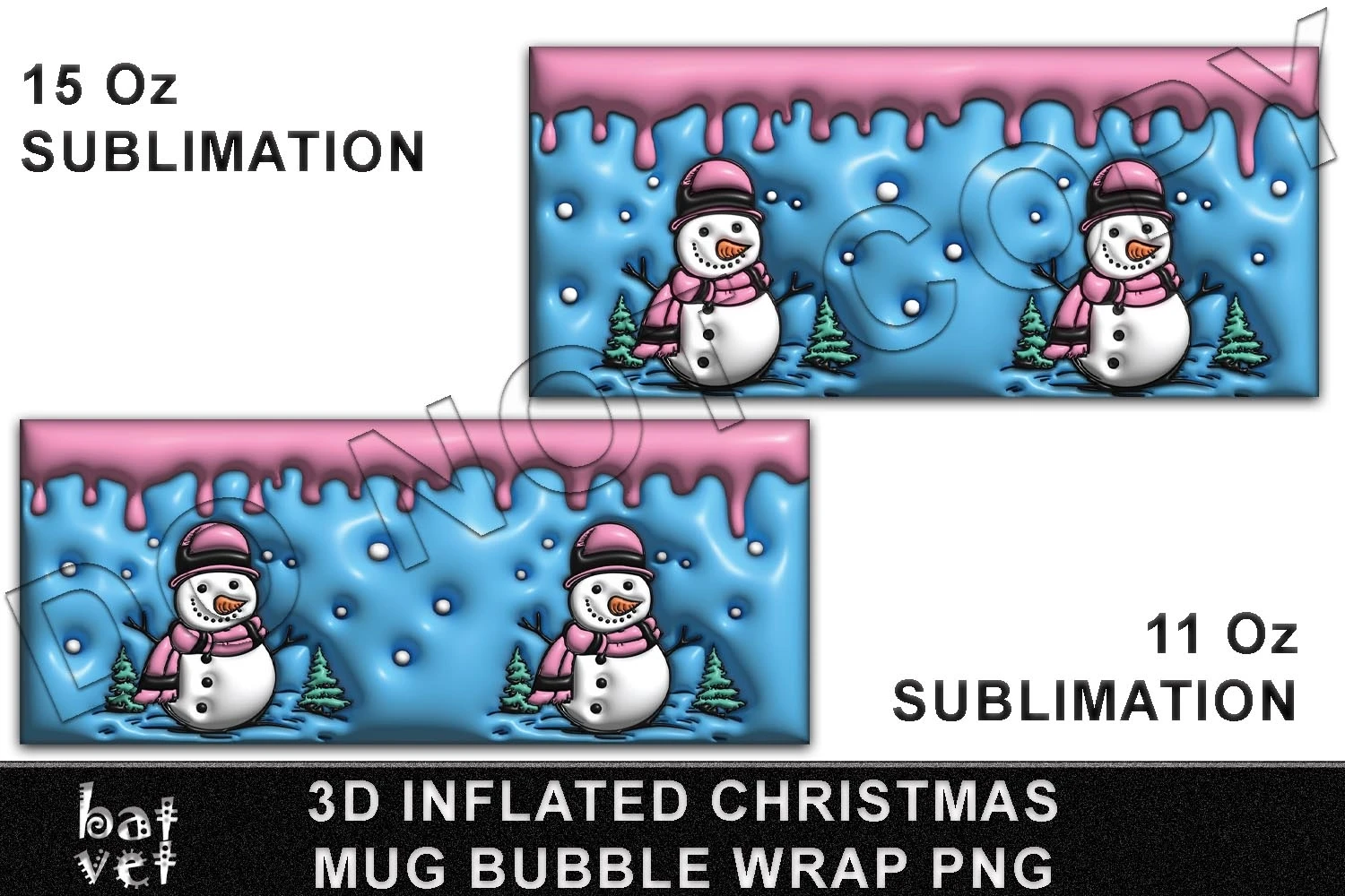 11 Oz Mug Wrap and 15 Oz Mug Design, Pink Frosting Drip, Pink Snowman, Christmas Sublimation for Mug Print.