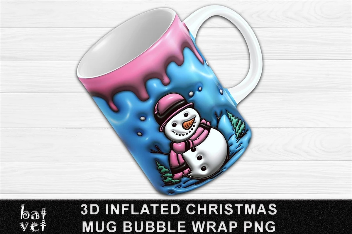 3D Inflated Christmas Mug Print / Snowman Mug Bubble Wrap