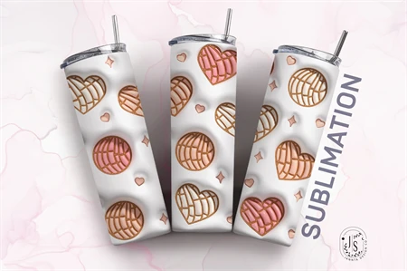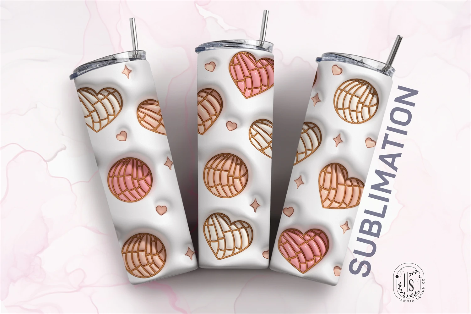 3D Inflated Concha Tumbler Wrap, Mexican Sublimation Design, Digital Download Puff Tumbler, Cafecito y Chisme png, Cookie Concha Tumbler, Digital Download PNG Template, Sublimation PNG Template
