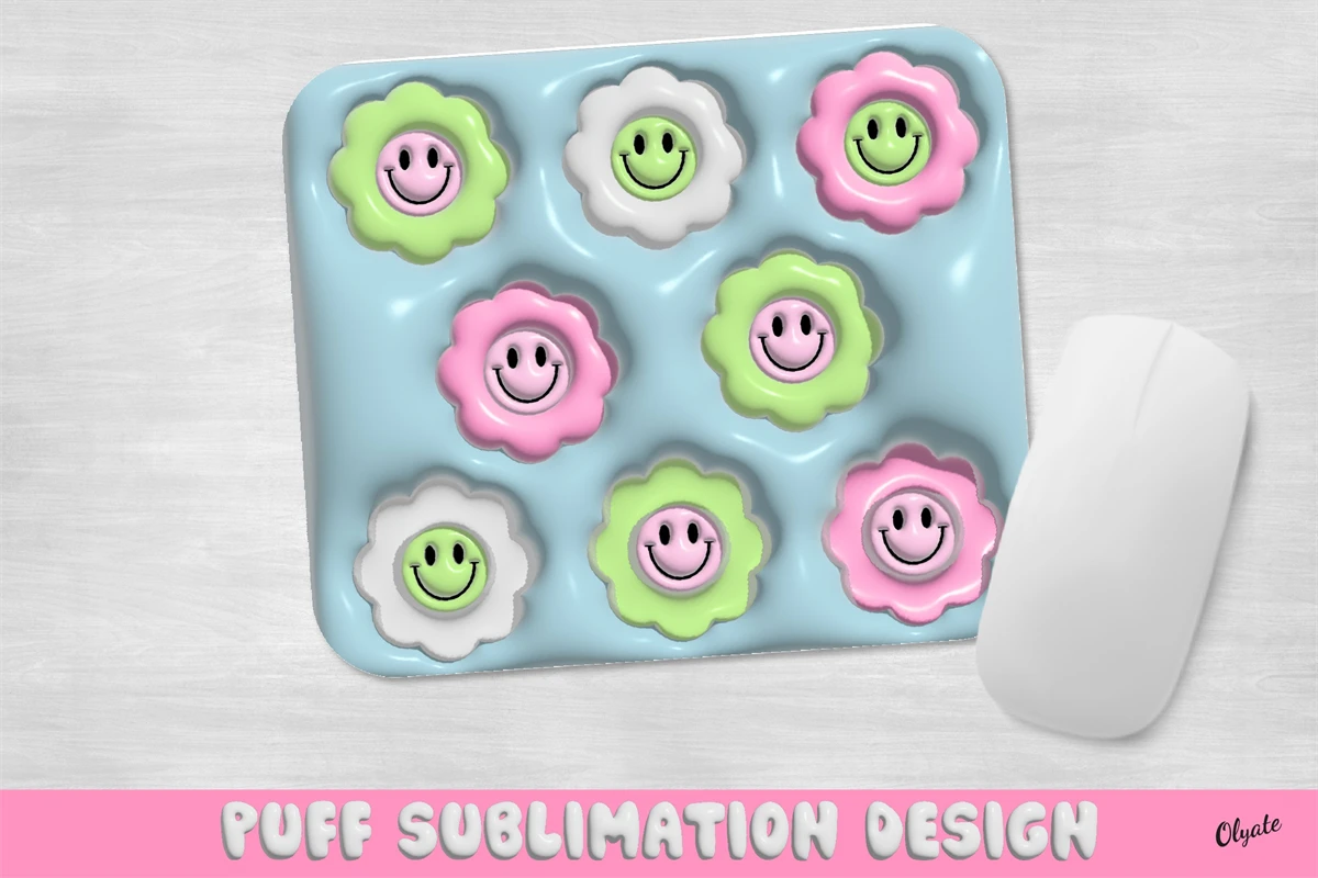 3D Inflated Mouse Pad Sublimation Design. 3D Puff Smile