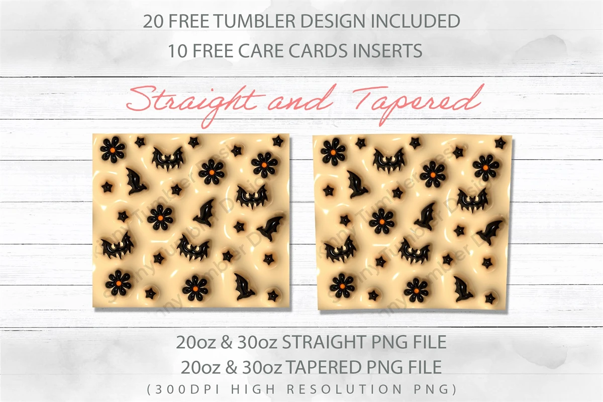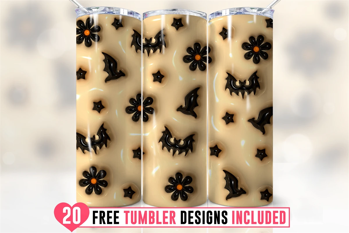 3D Inflated Puff 20oz Daisy Bat Skinny Tumbler, Spooky Vibes