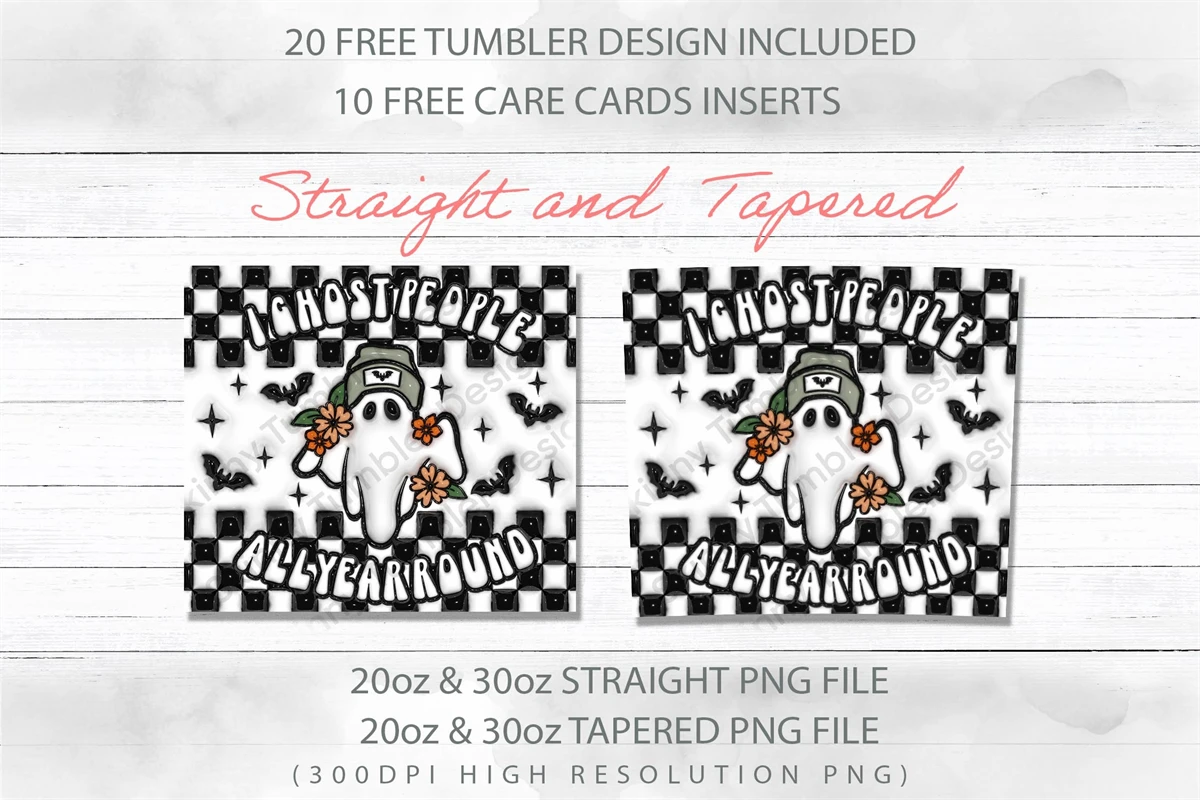 3D Inflated Puff 20oz I Ghost People Skinny Tumbler Wrap Png