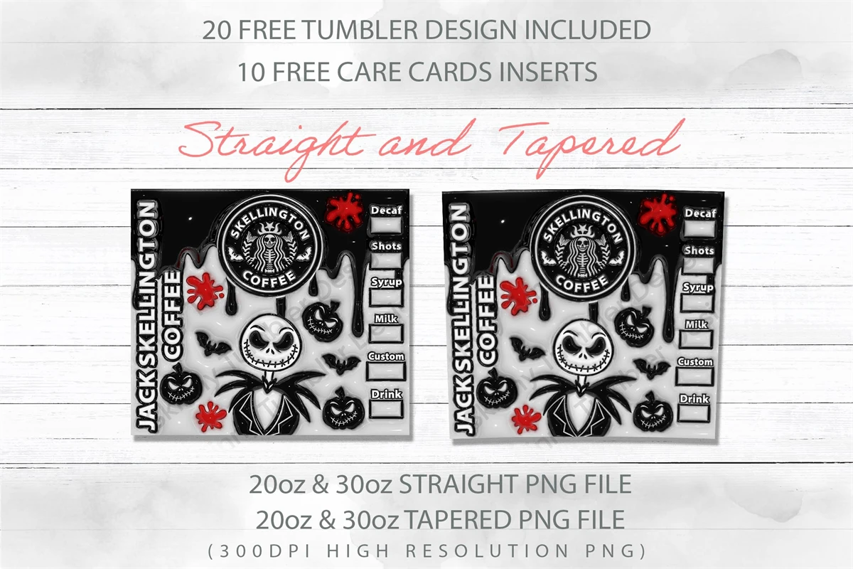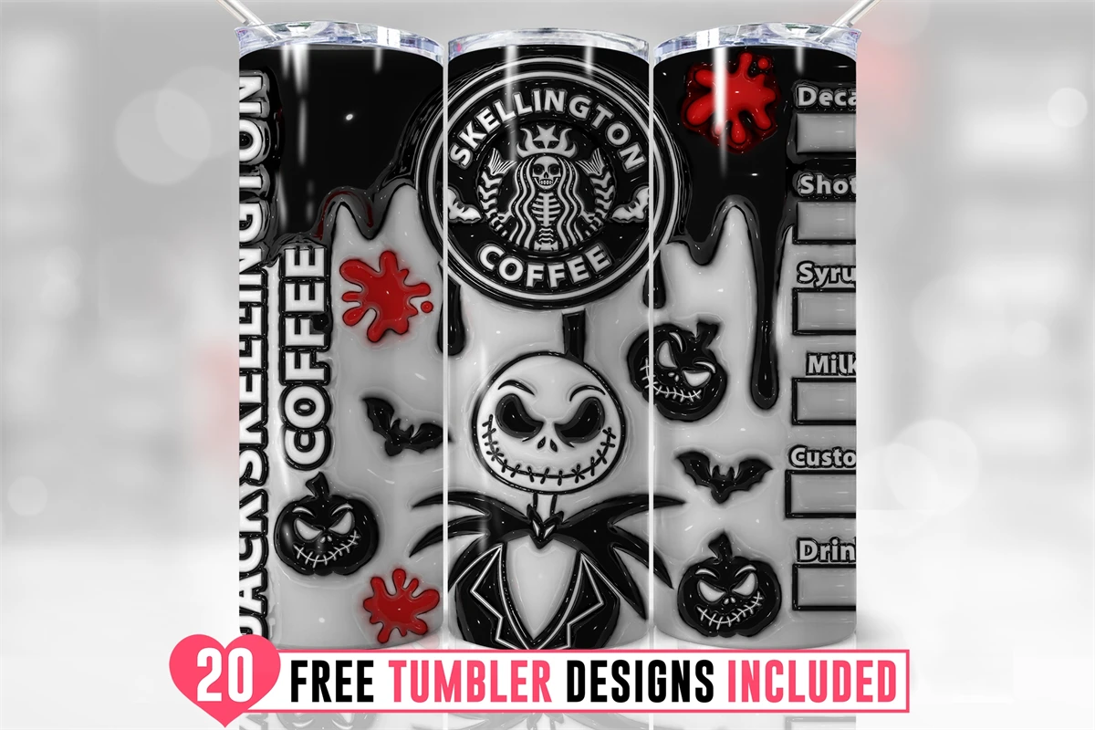 3D Inflated Puff 20oz Skellington Coffee Skinny Tumbler Wrap