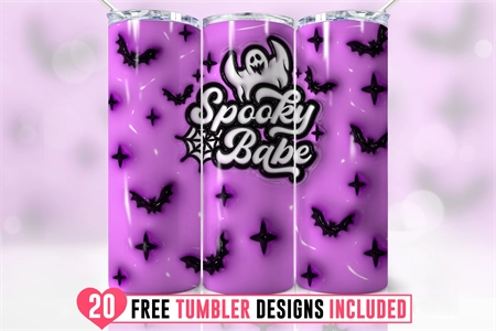3D Inflated Puff 20oz Spooky Babe Skinny Tumbler,Spooky Vibe