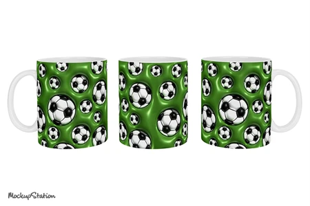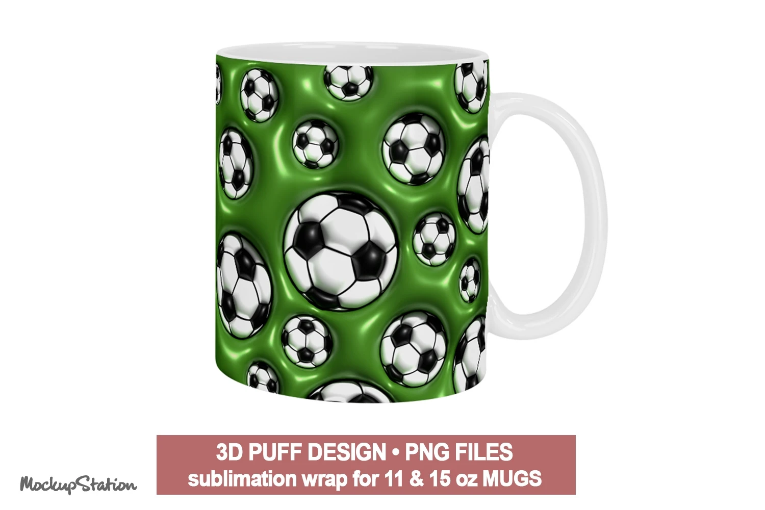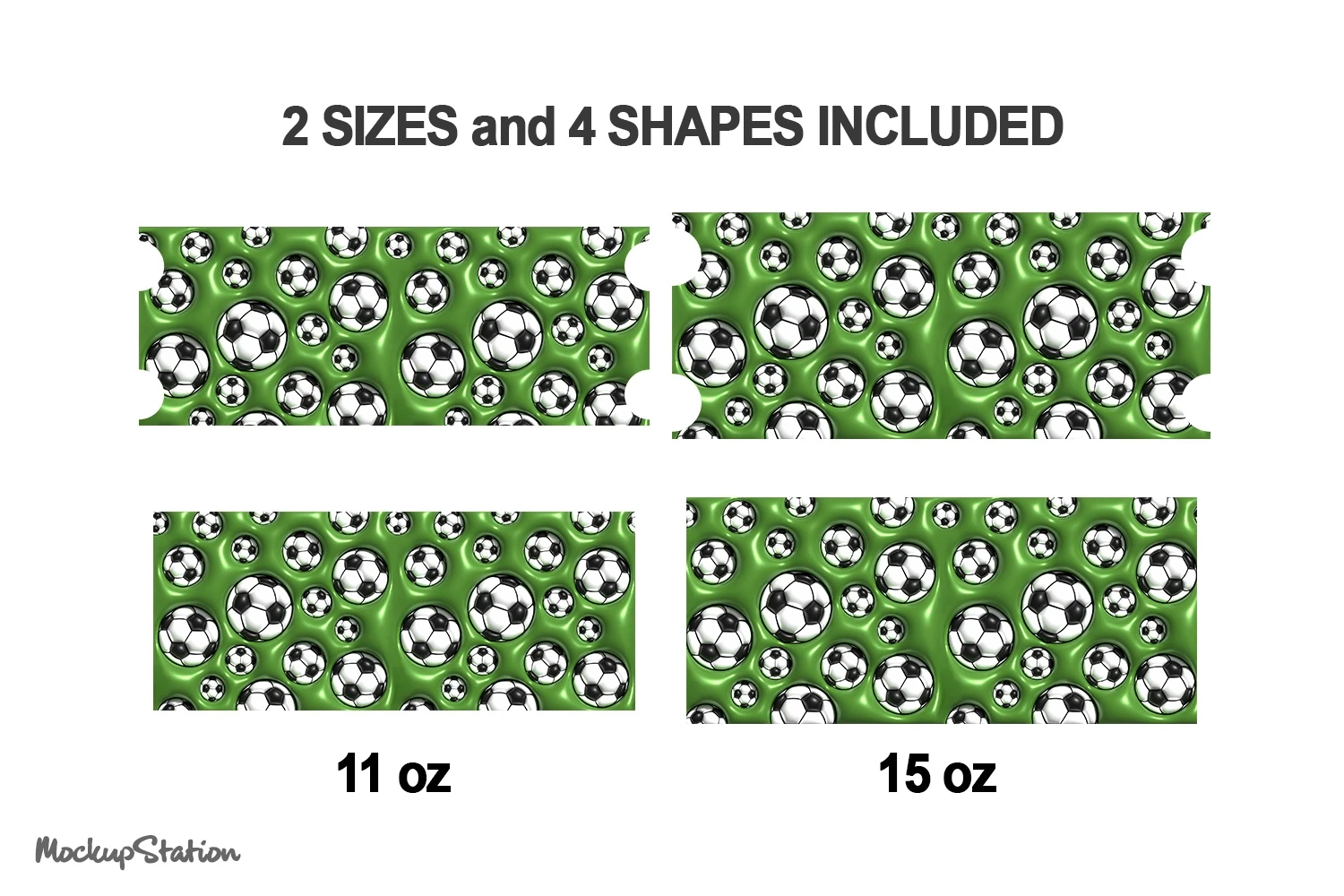 3D Inflated Puffy Soccer Mug Wrap PNG, Puff Football Sports Sublimation Design