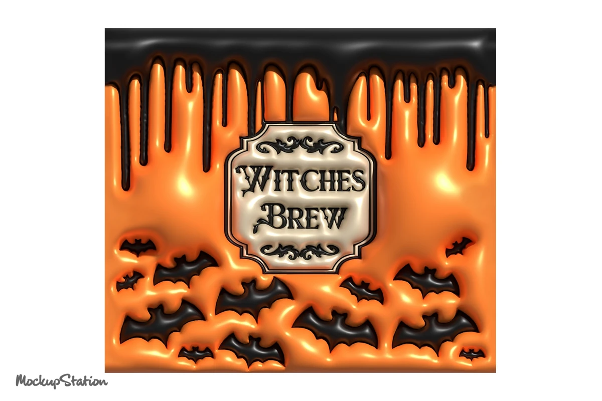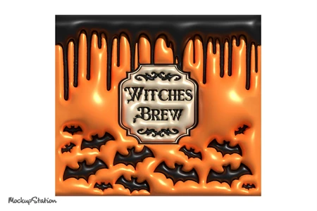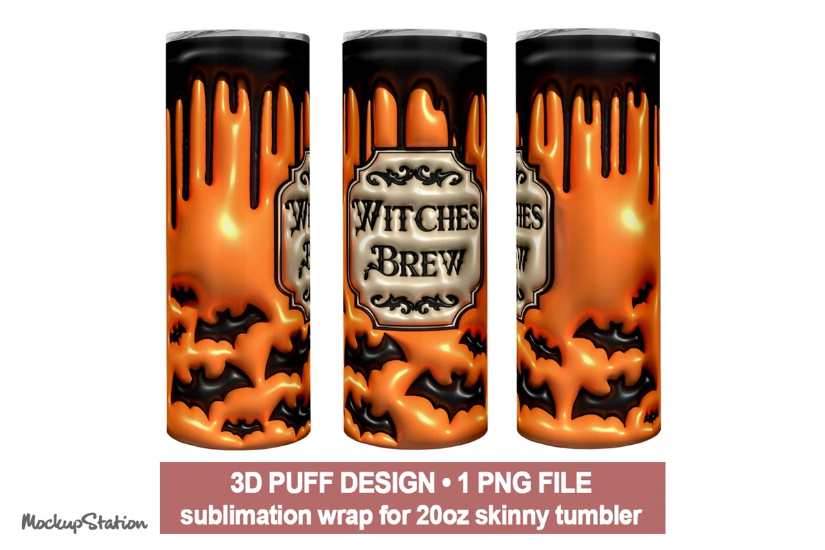 3D Inflated Puff Witches Brew Tumbler Wrap Design Sublimation PNG, Puffy Halloween 20oz Skinny Digital Download
