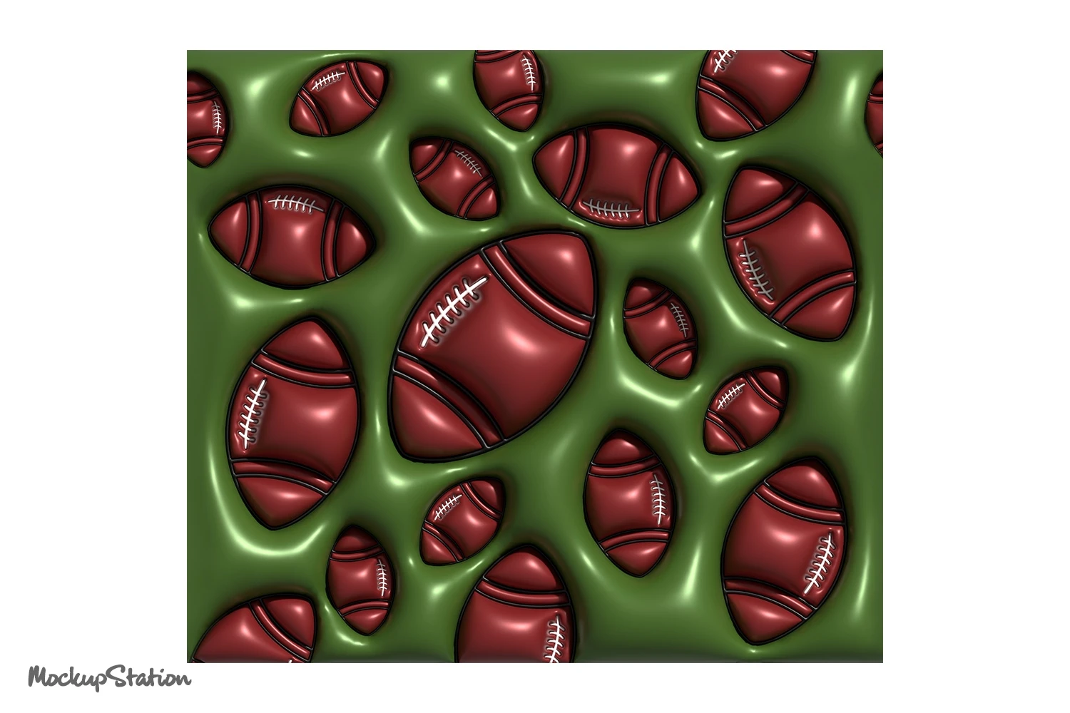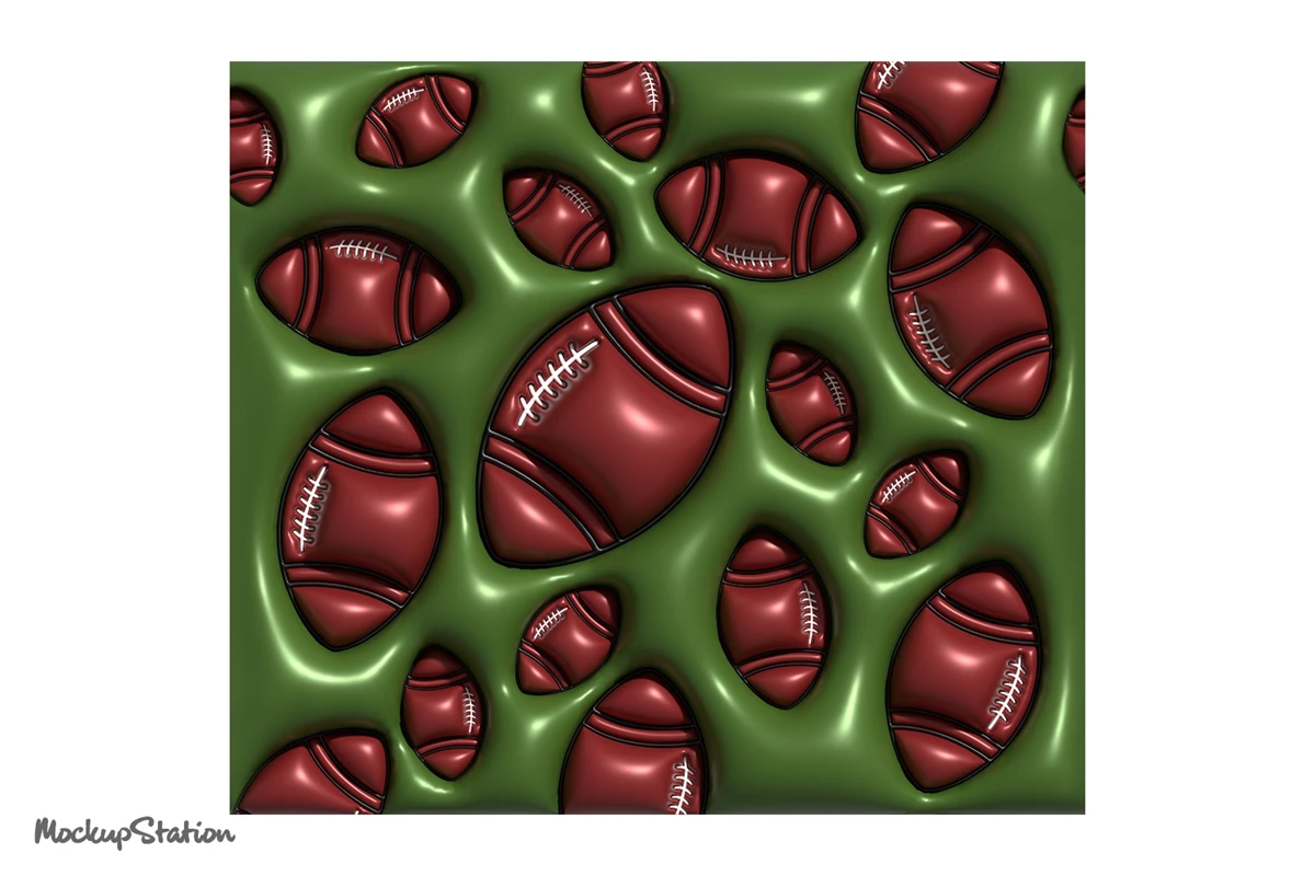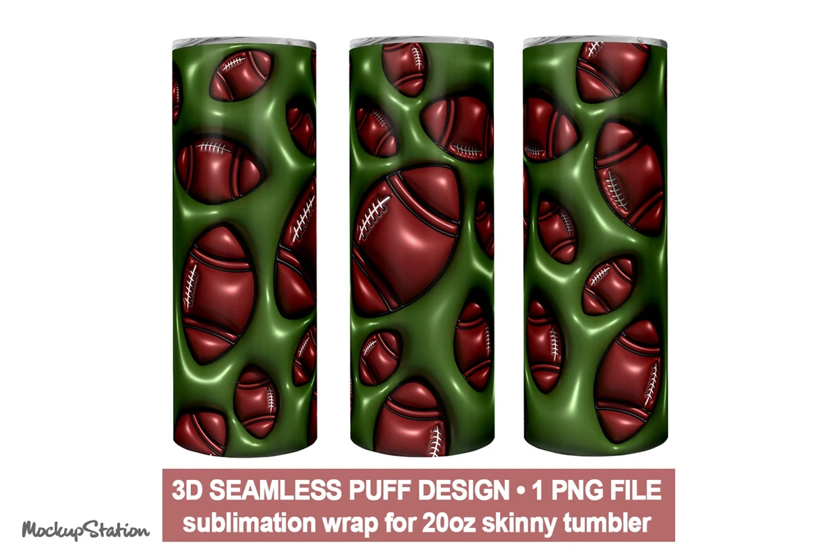 3D Inflated Puffy Rugby Ball Tumbler Wrap PNG, Puff American Football Sublimation for 20oz Skinny, Digital Design Download