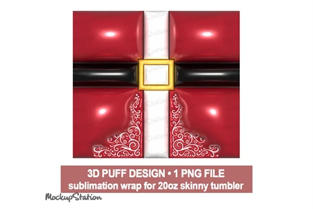 3D Inflated Puffy Santa Belly Tumbler Wrap, Puff Christmas Design Sublimation PNG, 20oz Skinny Digital Download