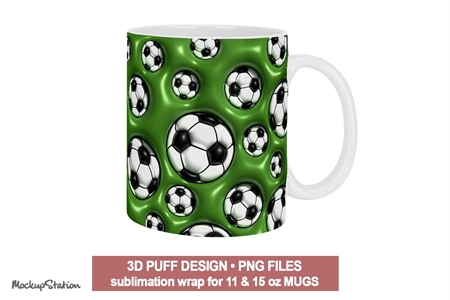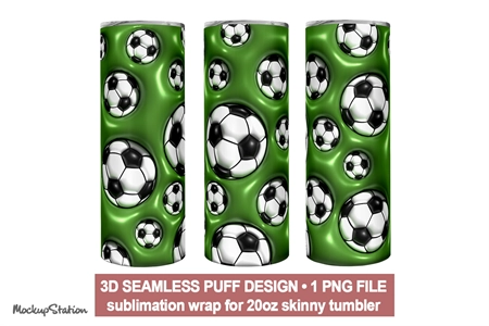 3D Inflated Puffy Soccer Ball Tumbler Wrap PNG, Puff Football Sublimation for 20oz Skinny, Digital Design Download