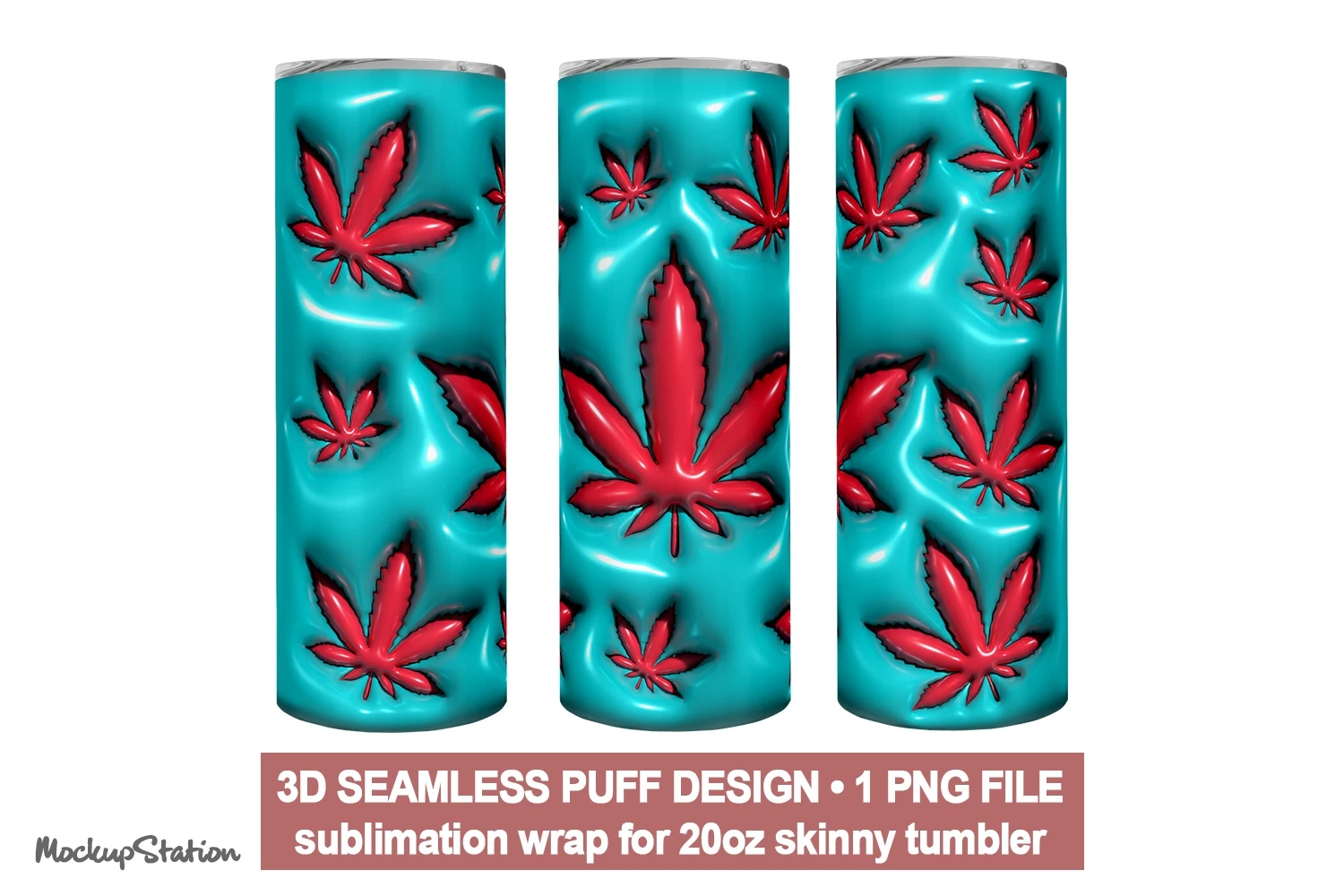 3D Inflated Puffy Weed Leaf Tumbler Wrap PNG, Puffy Cannabis Sublimation for 20oz Skinny, Marijuana Digital Design Download