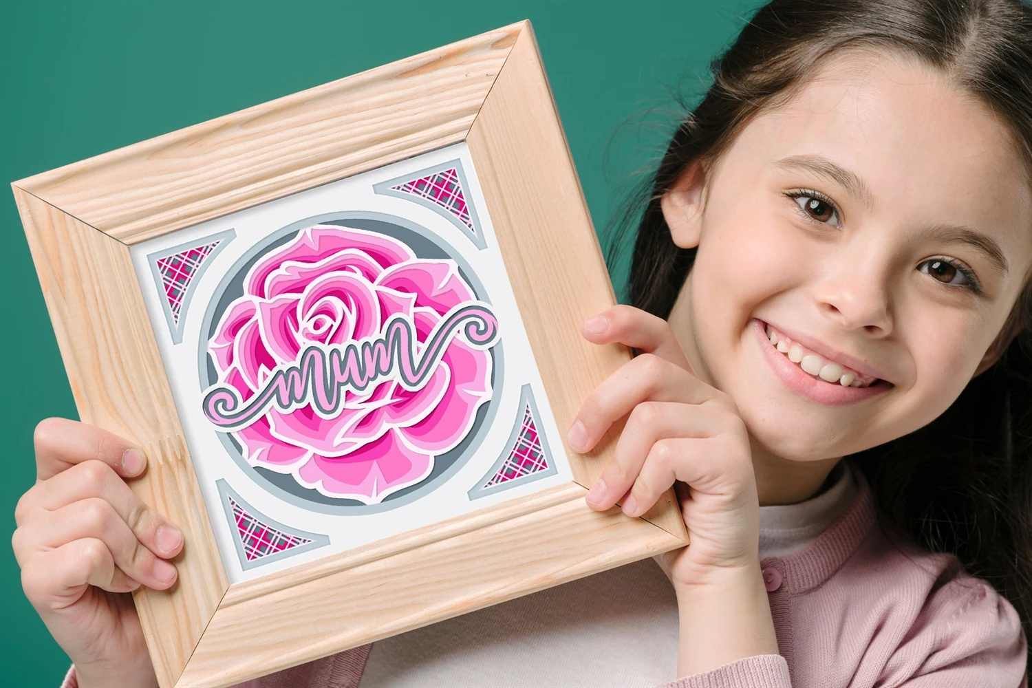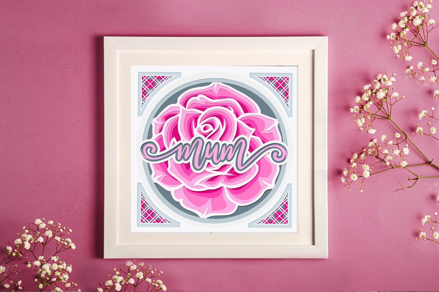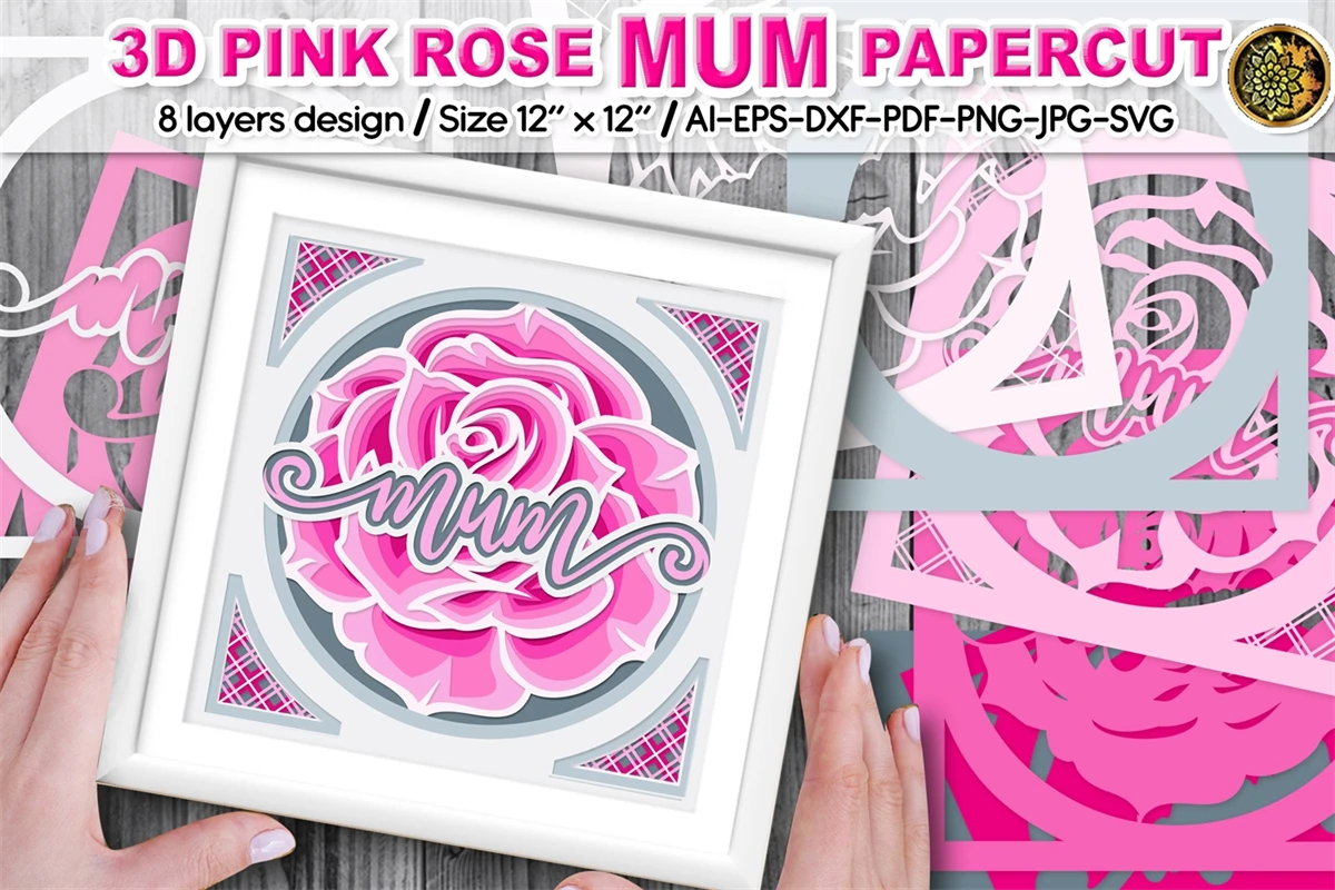 3D Pink Rose MUM Multi-Layered Design Flower SVG Clipart Cut Files in Yellow & Brown Tone color for your creative DIY projects, and Home Decorations. Perfect for papercut, scrapbooking, card stock, home decor, and Handmade Gifts for your Mum on Mothers Day.