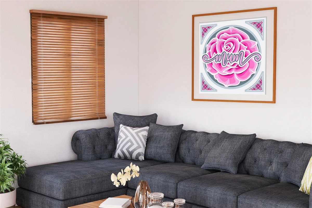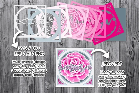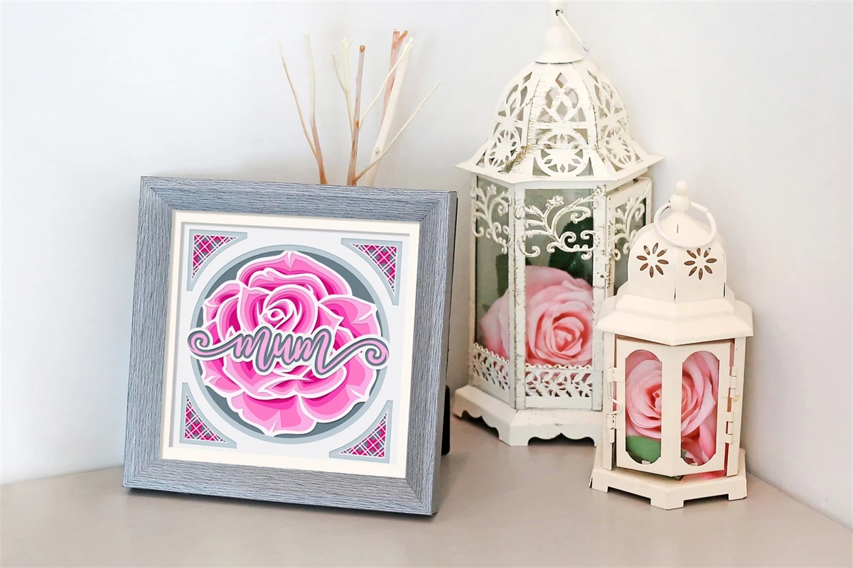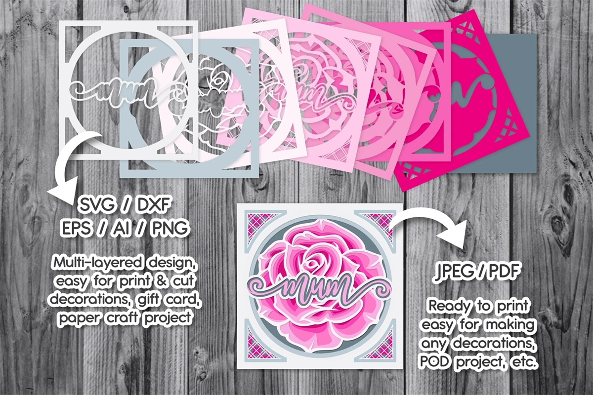 3D Pink Rose MUM Multi-Layered Design Flower SVG Clipart Cut Files in Yellow & Brown Tone color for your creative DIY projects, and Home Decorations. Perfect for papercut, scrapbooking, card stock, home decor, and Handmade Gifts for your Mum on Mothers Day.