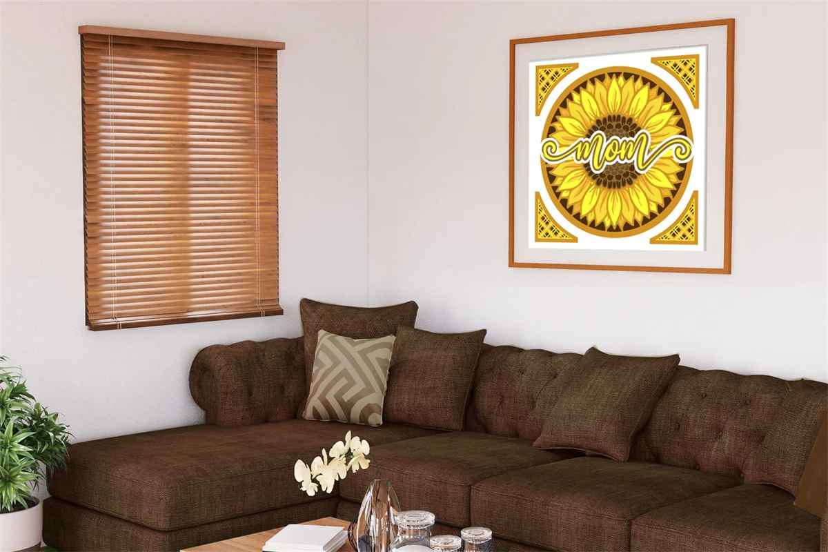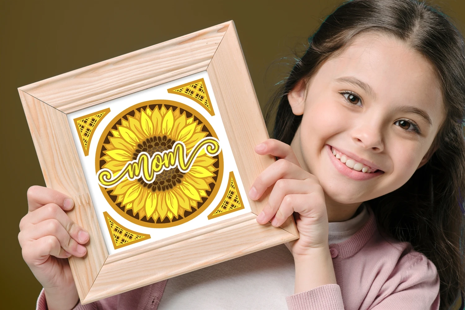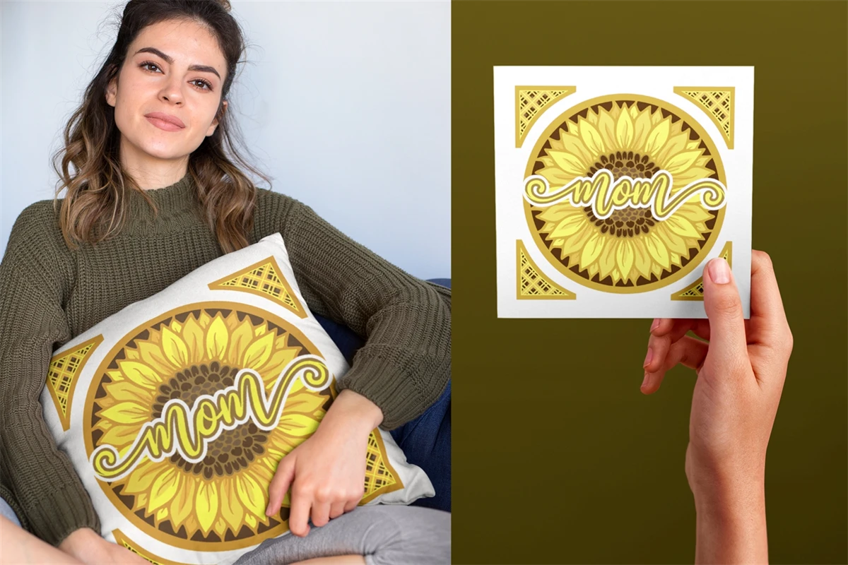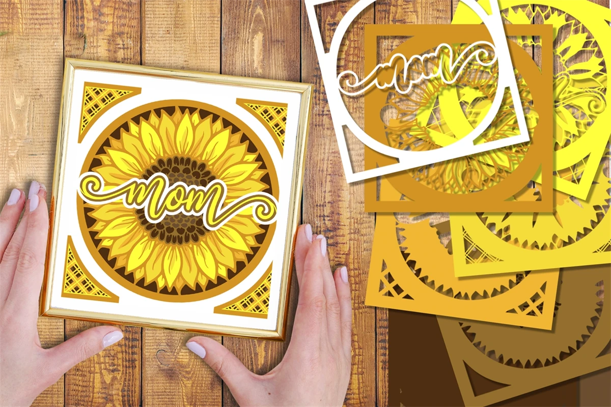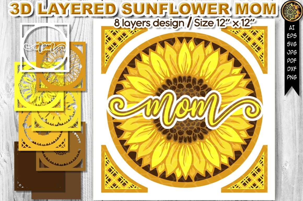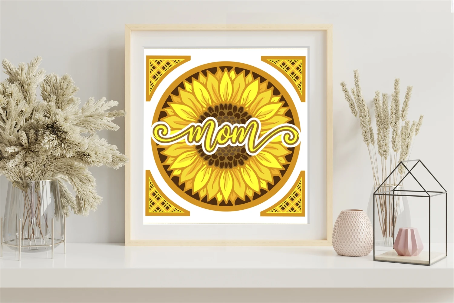 3D Sunflower MOM Multi-Layered Design Flower SVG Clipart Cut Files in Yellow & Brown Tone color for your creative DIY projects, and Home Decorations. Perfect for papercut, scrapbooking, card stock, home decor, and Handmade Gifts for your Mum on Mothers Day.