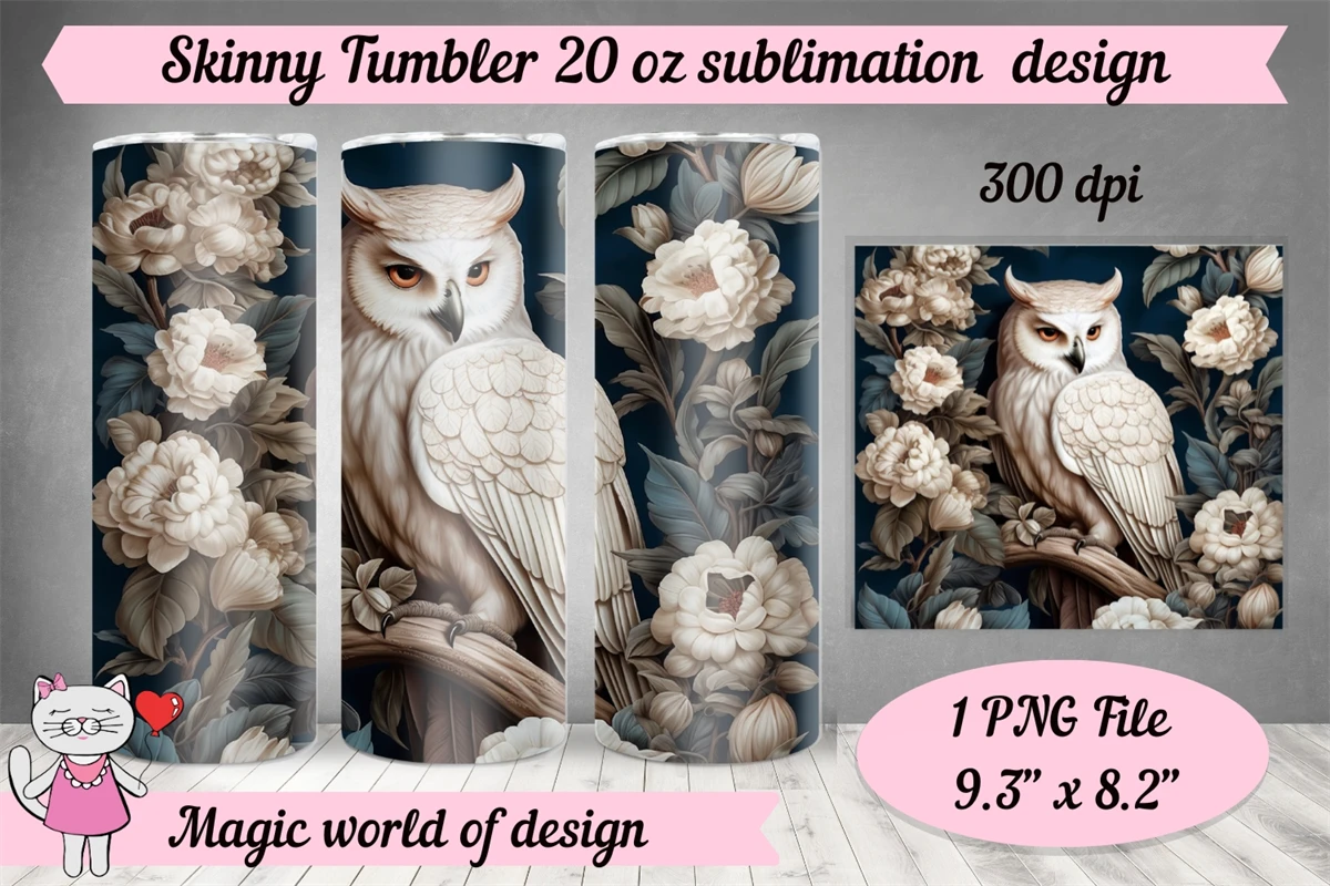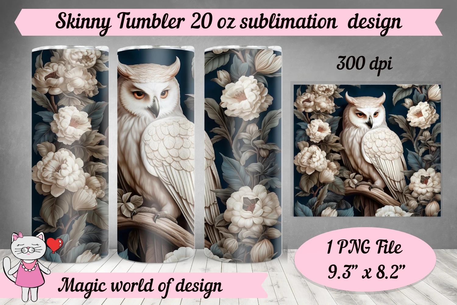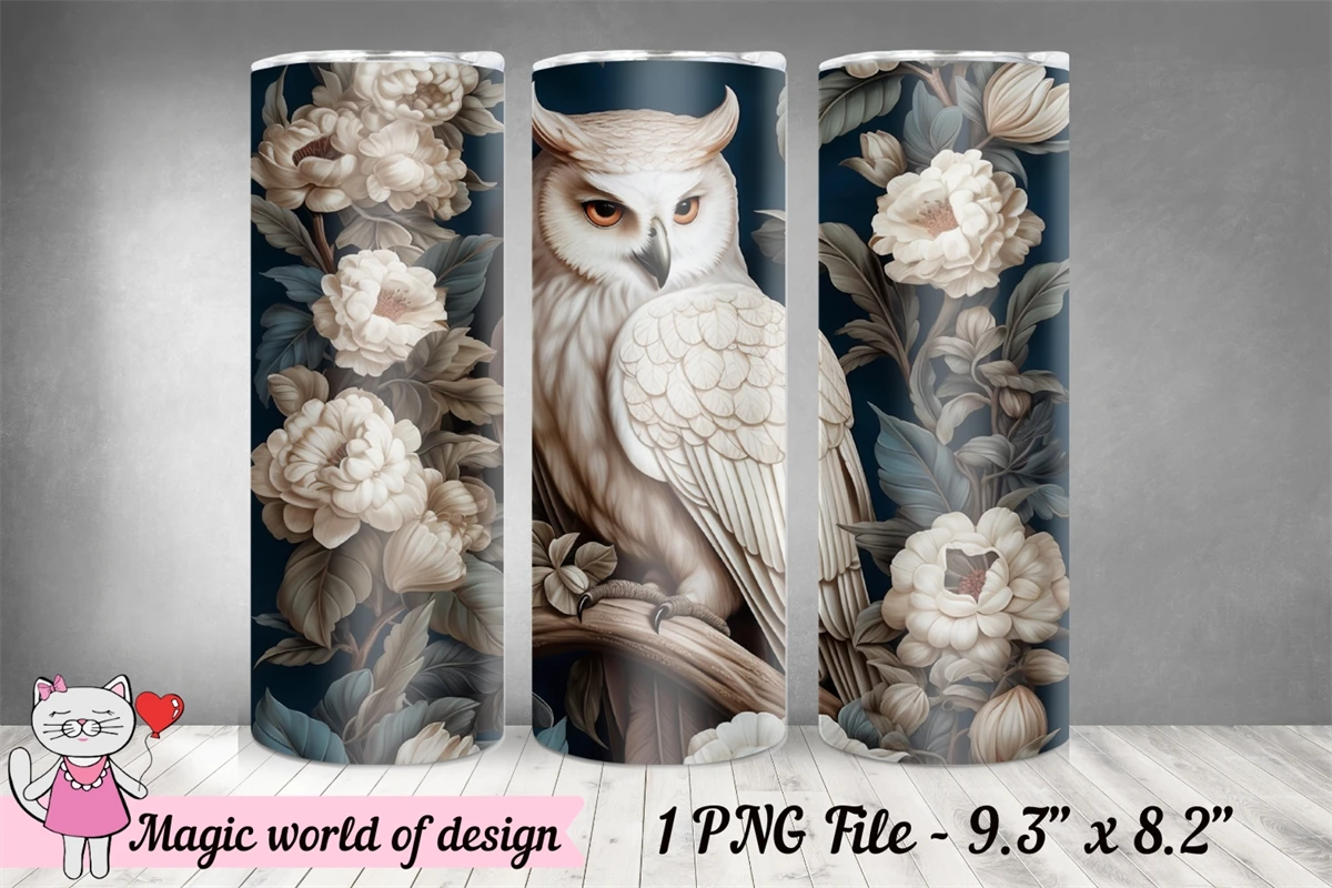 3D Owl flowers skinny Tumbler 20 oz, Sublimation Design
