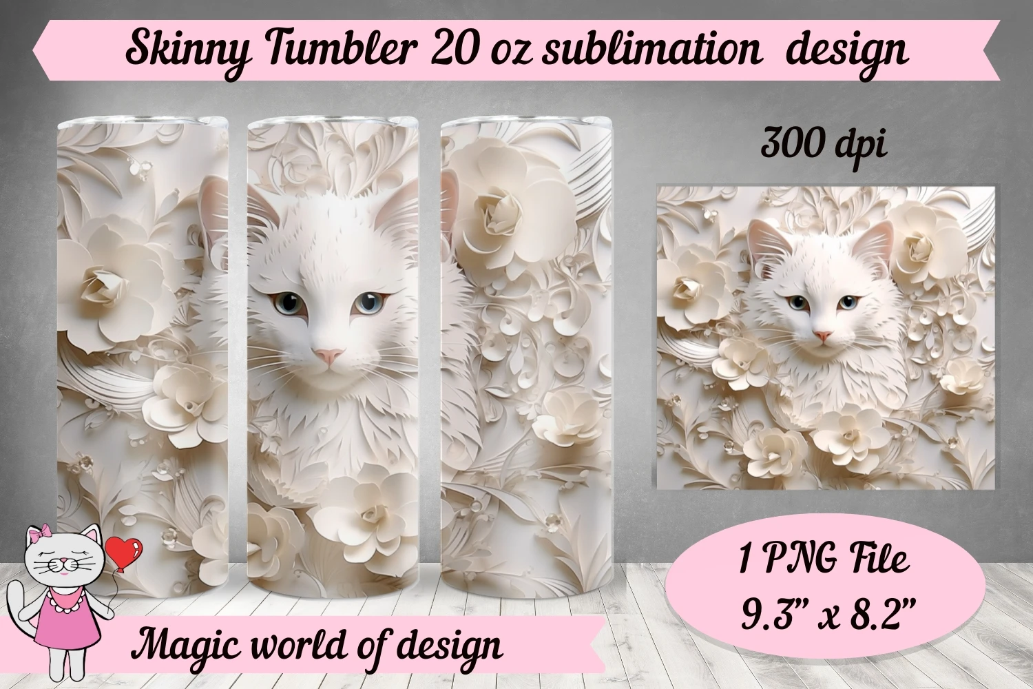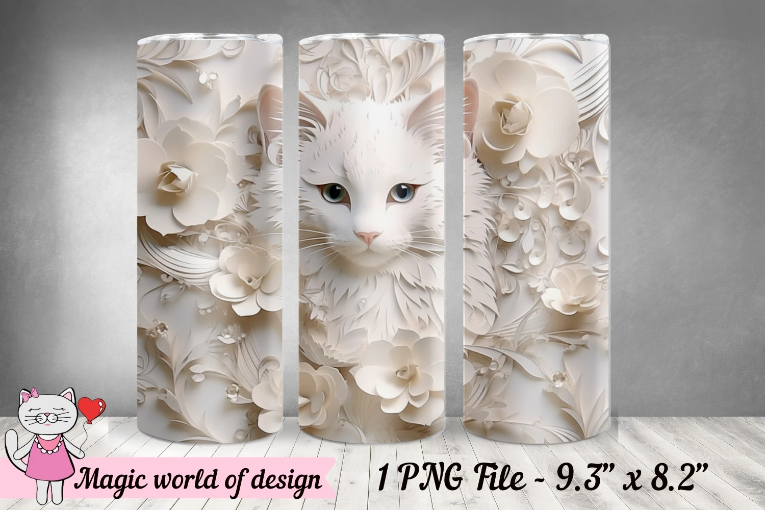 3D cat tumbler wrap png