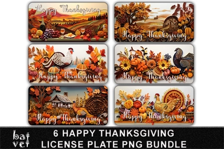 3D Papercut Thanksgiving License Plate Sublimation Bundle / Happy Thanksgiving Car Plate Designs / 6 PNG Files