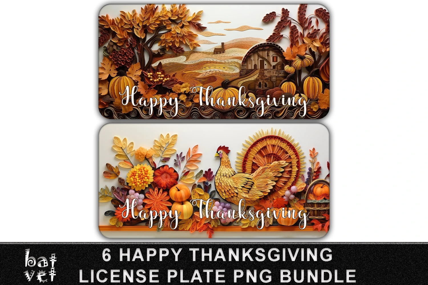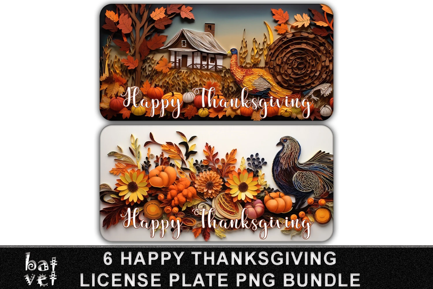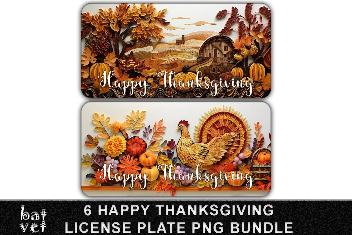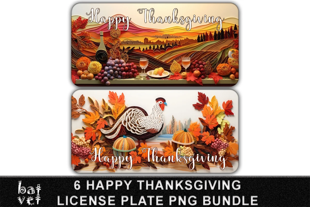 3D Papercut Quill Happy Thanksgiving Car Tag License Plate Sublimation Bundle.