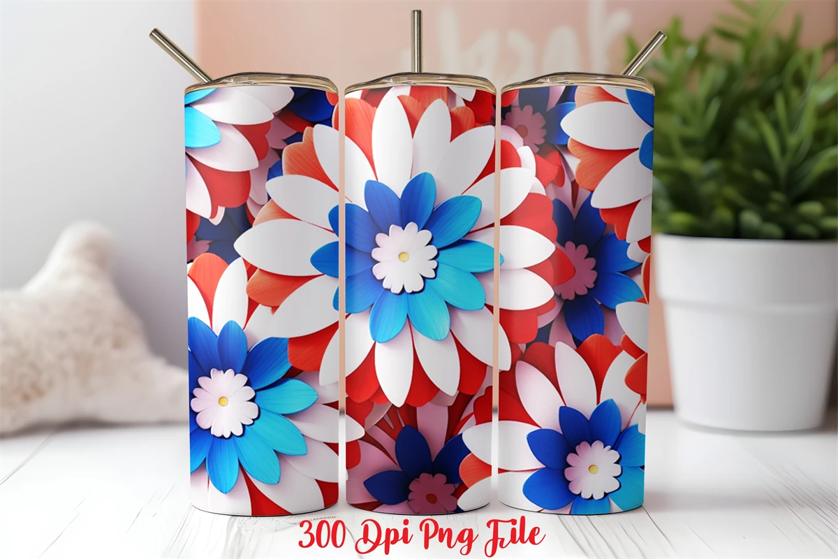 3D Patriotic Flowers Tumbler Wrap design