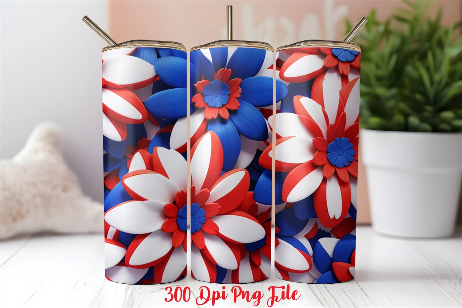 3D Patriotic Flowers Tumbler Wrap design