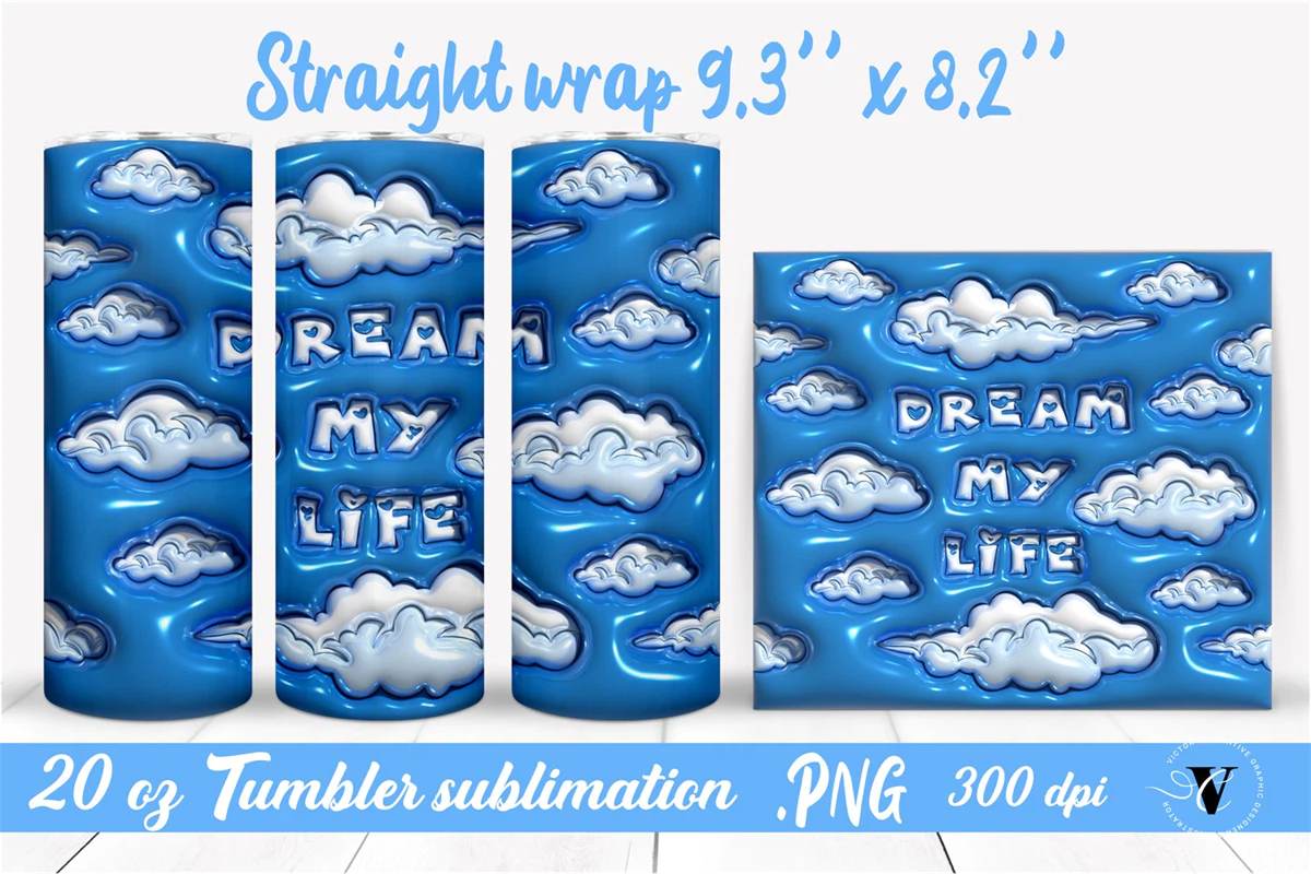 3D Puff Clouds tumbler, 3D Butterfly sublimation, 20 oz tumbler sublimation design, tumbler wrap, skinny tumbler, Dream my Life, clouds sublimation