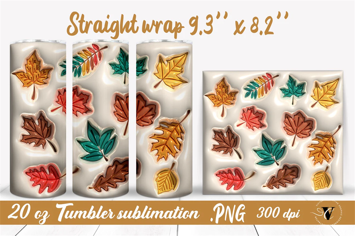 3D Puff Leavestumbler, 3D Leaves sublimation, 20 oz tumbler sublimation design, tumbler wrap, skinny tumbler,