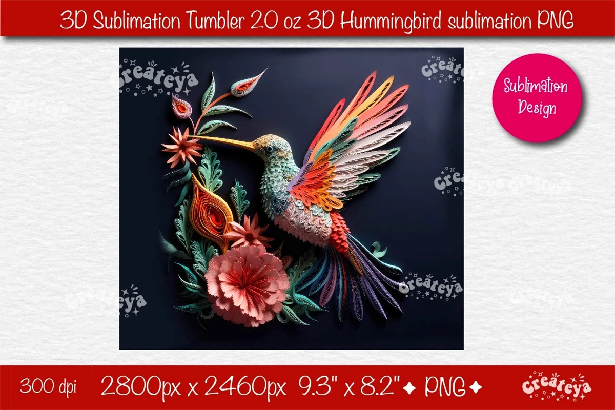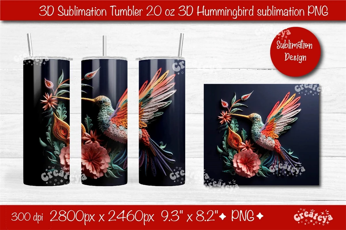 3D Hummingbird 3D Flower Tumbler 20 Oz sublimation design PNG.