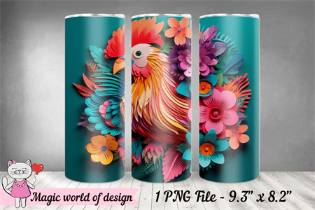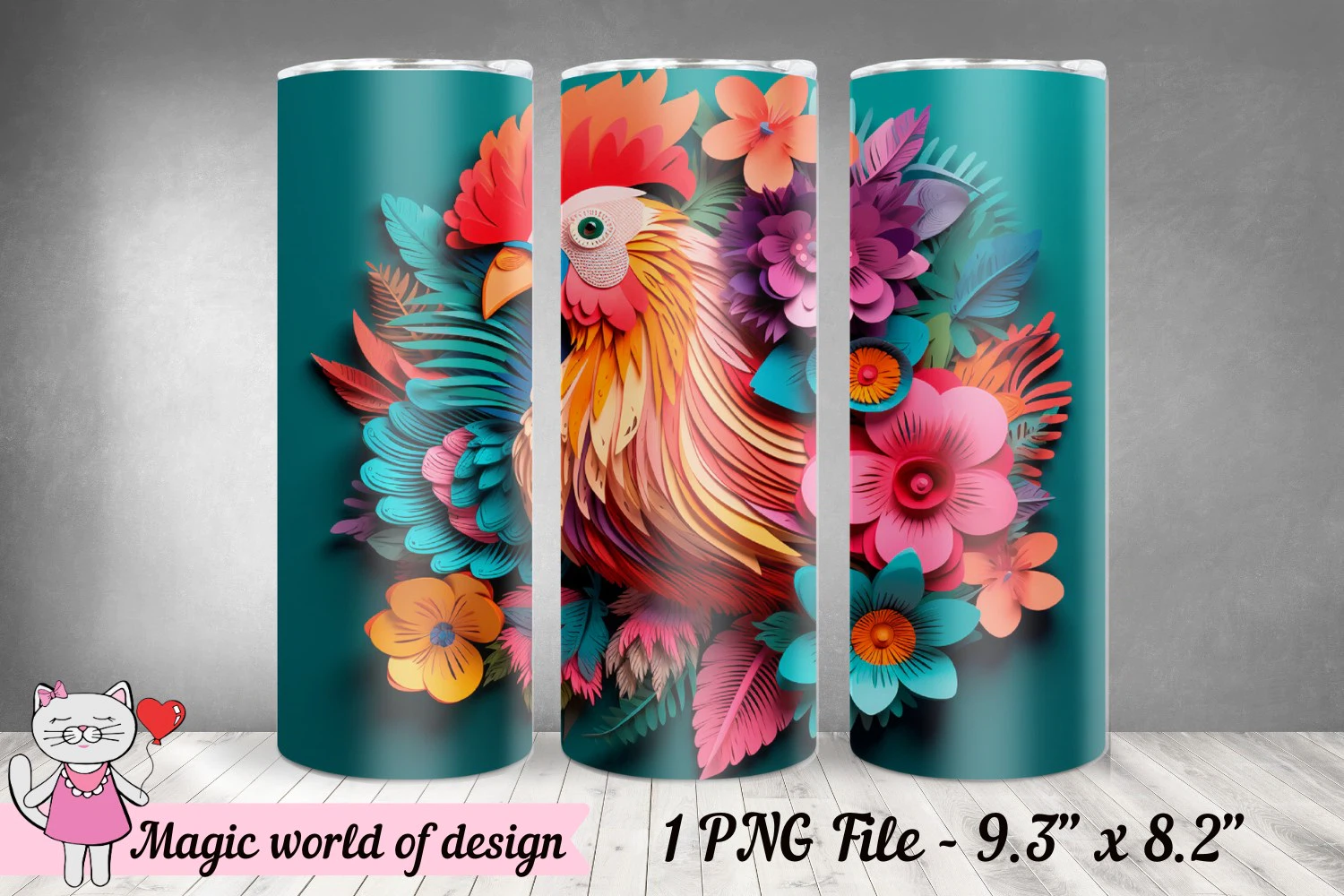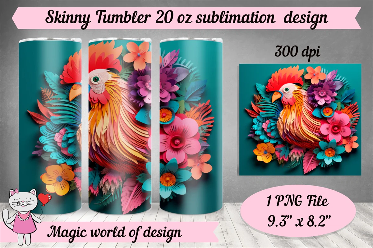 3D Rooster 20 oz Skinny Tumbler, Sublimation Png Design