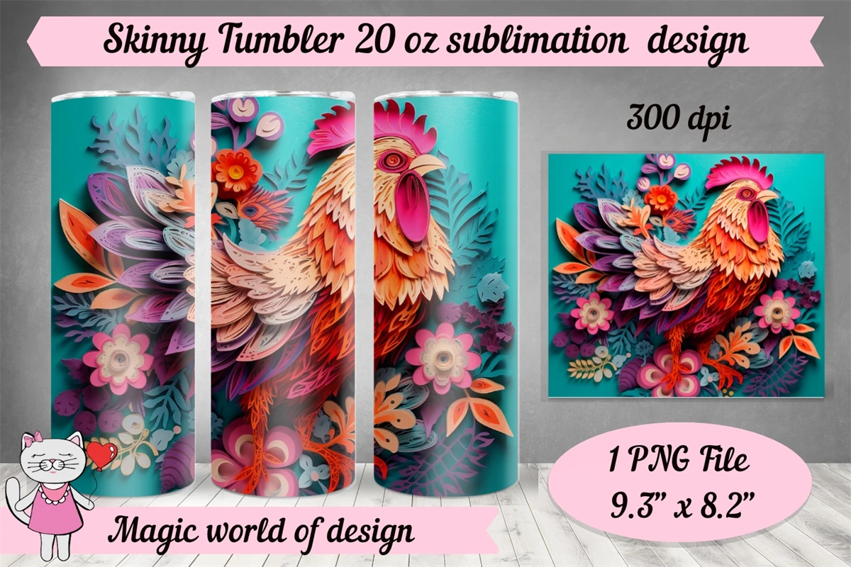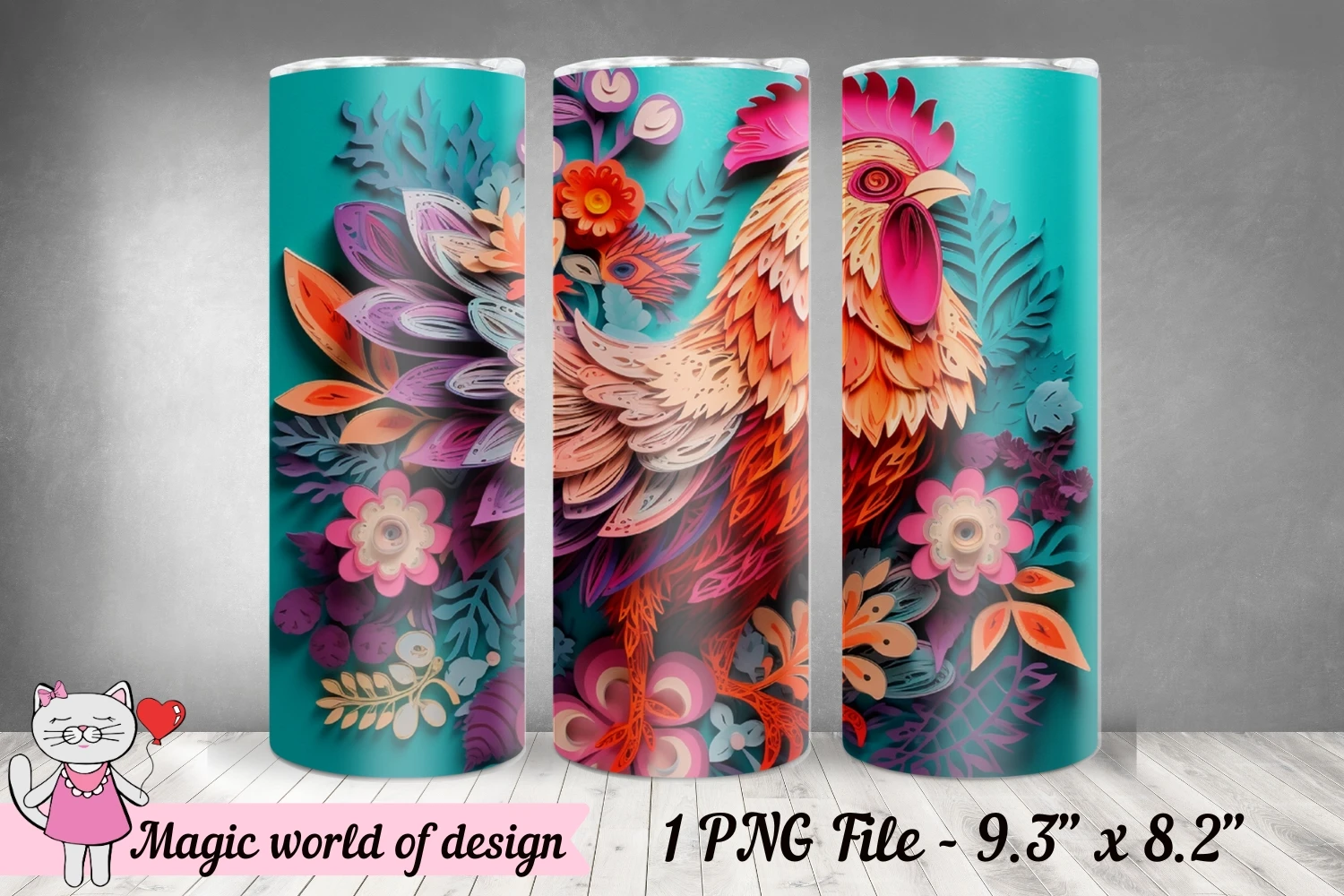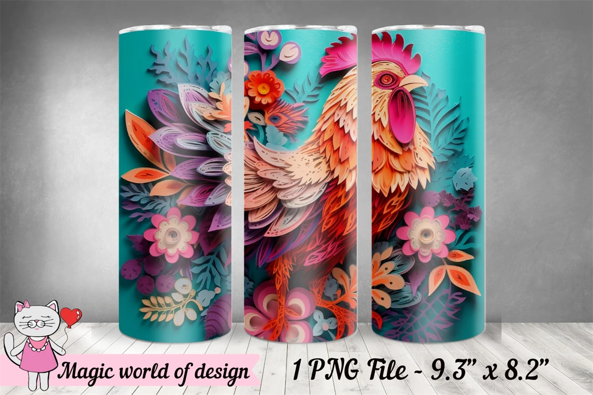 3D Rooster Tumbler flowers skinny Tumbler 20 oz, 3d chicken